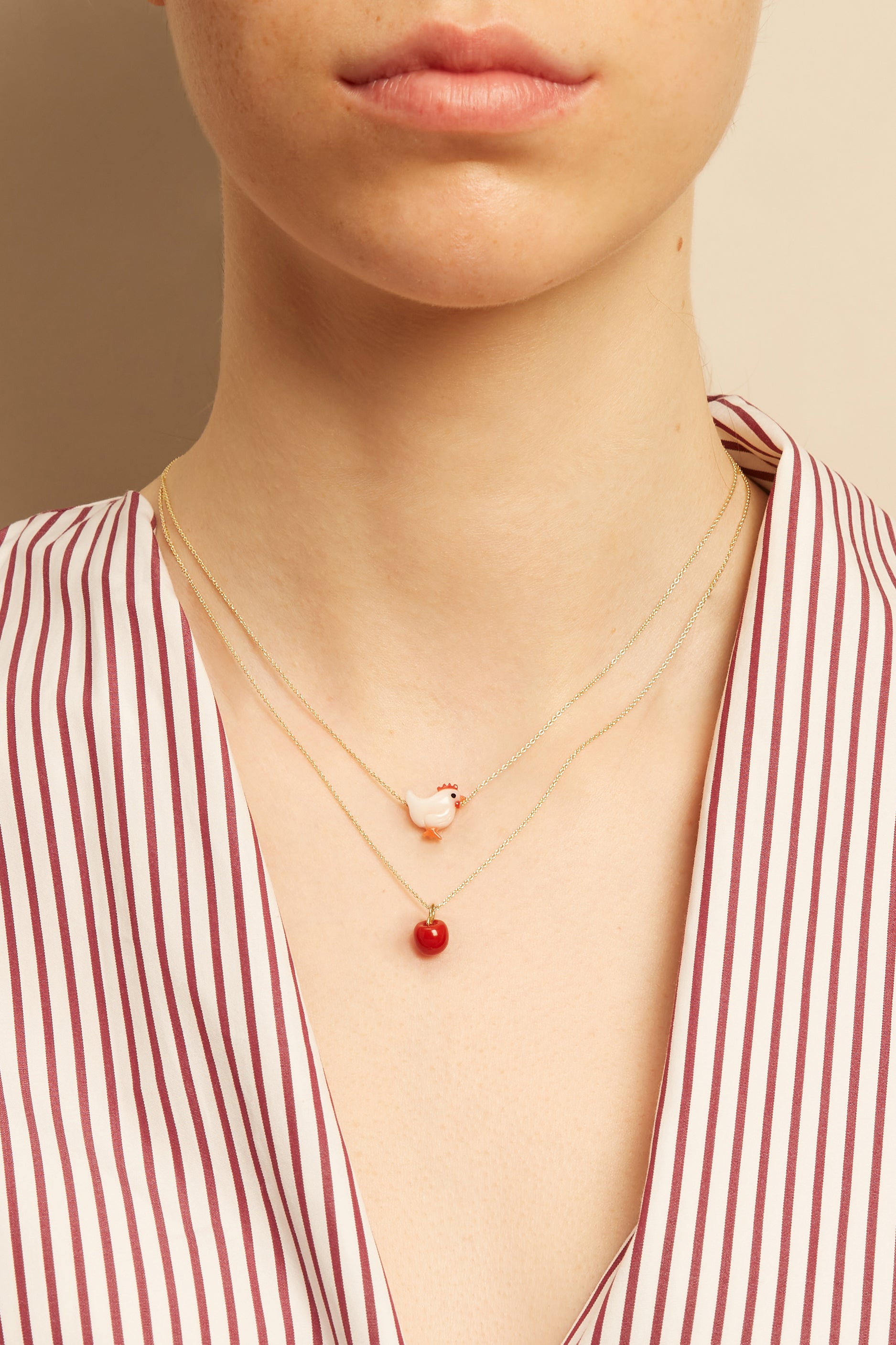 Indulge your senses with our exquisite Apple necklace. Crafted from the finest gold, the necklace features a captivating red coral apple charm, meticulously detailed with a gold leaf. This elegant piece is a subtle nod to the simple pleasures of life, making it a timeless addition to any jewelry collection.