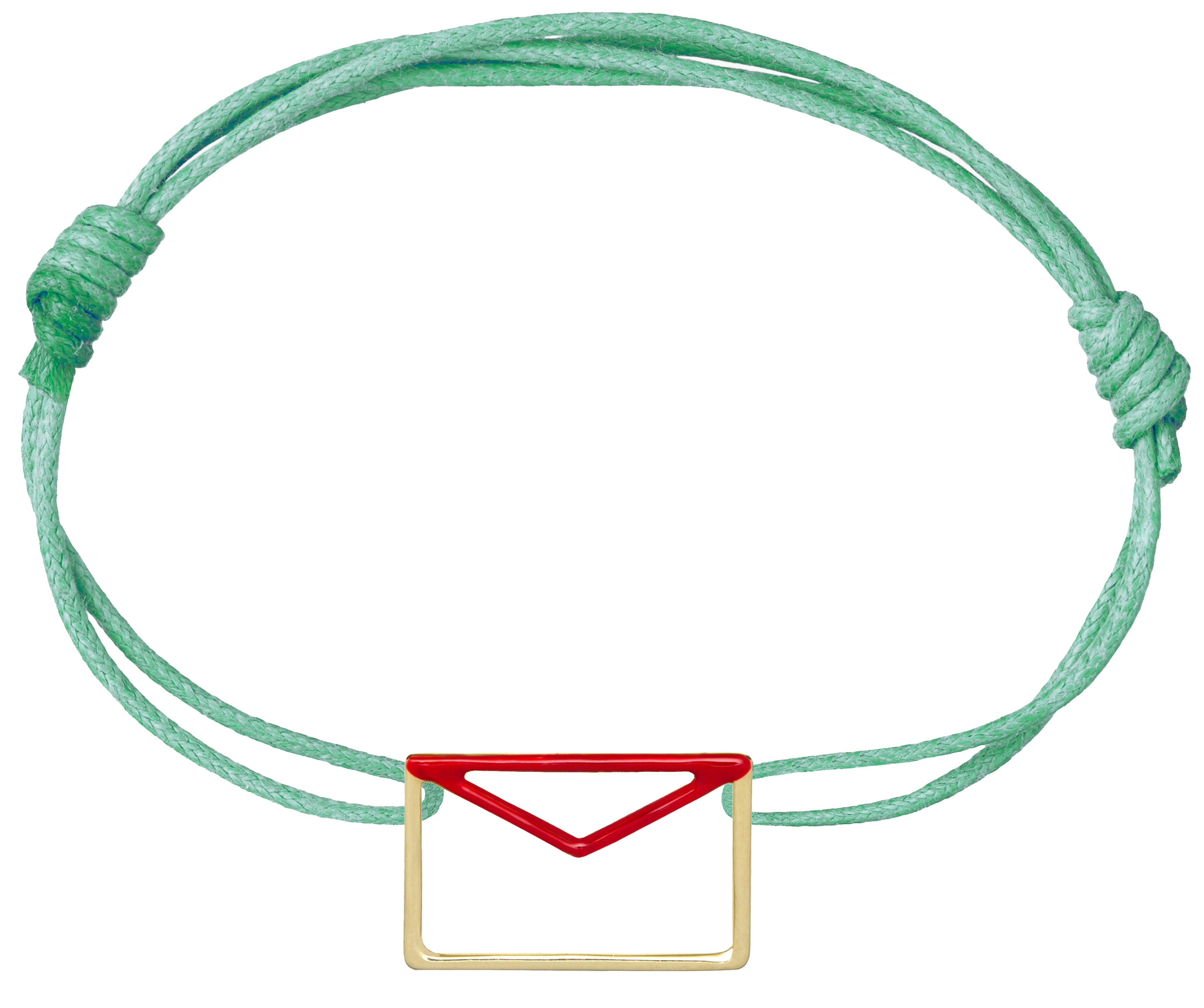 Material: 9kt yellow gold, Hand-painted lipstick red enamel, 100% cotton cord / Eco in 100% recycled polyester