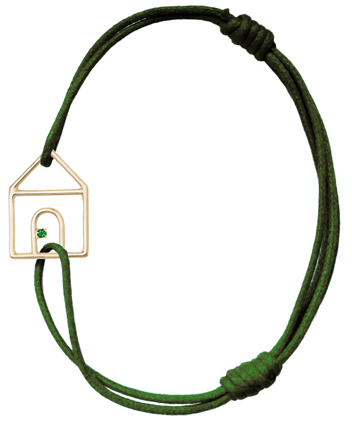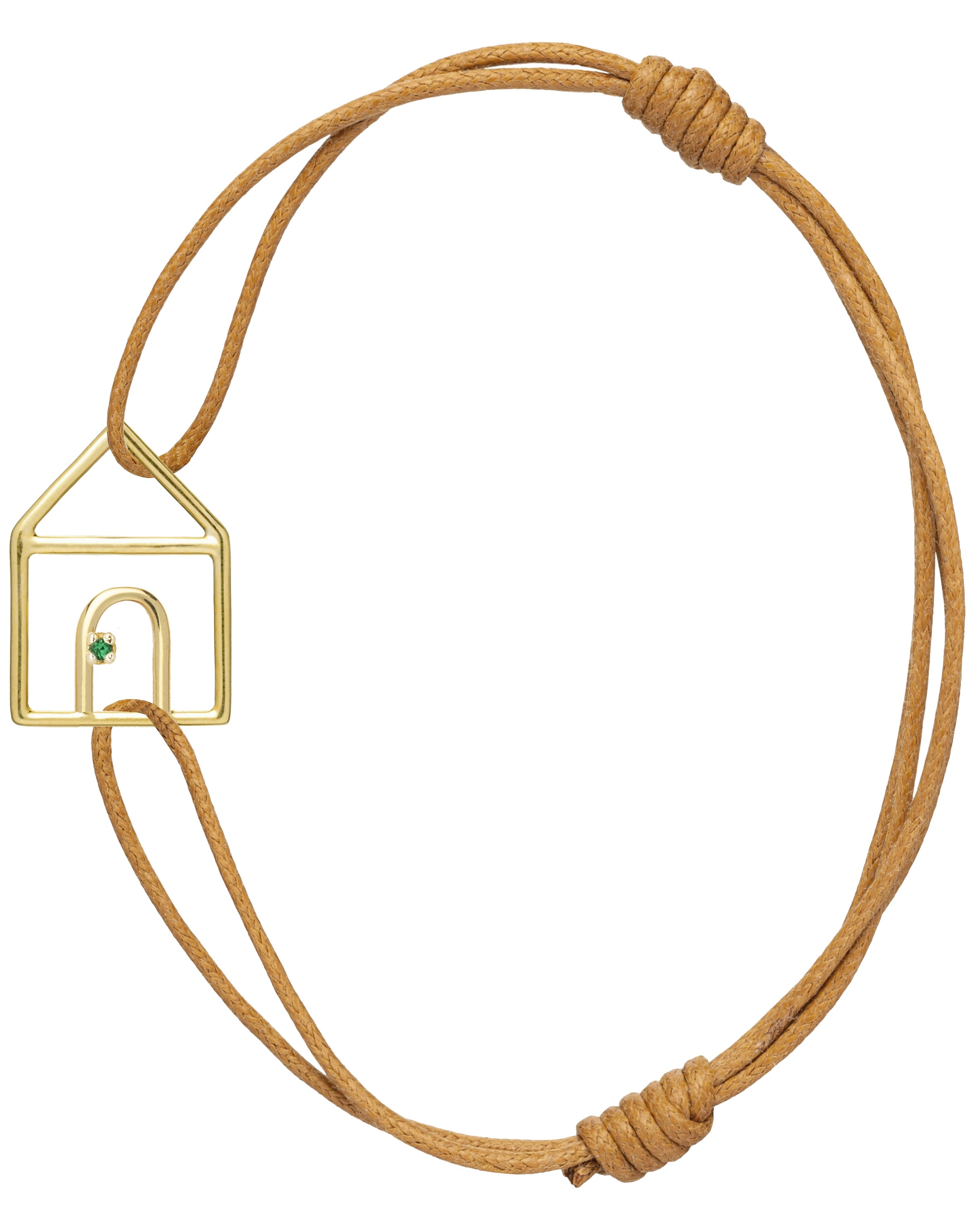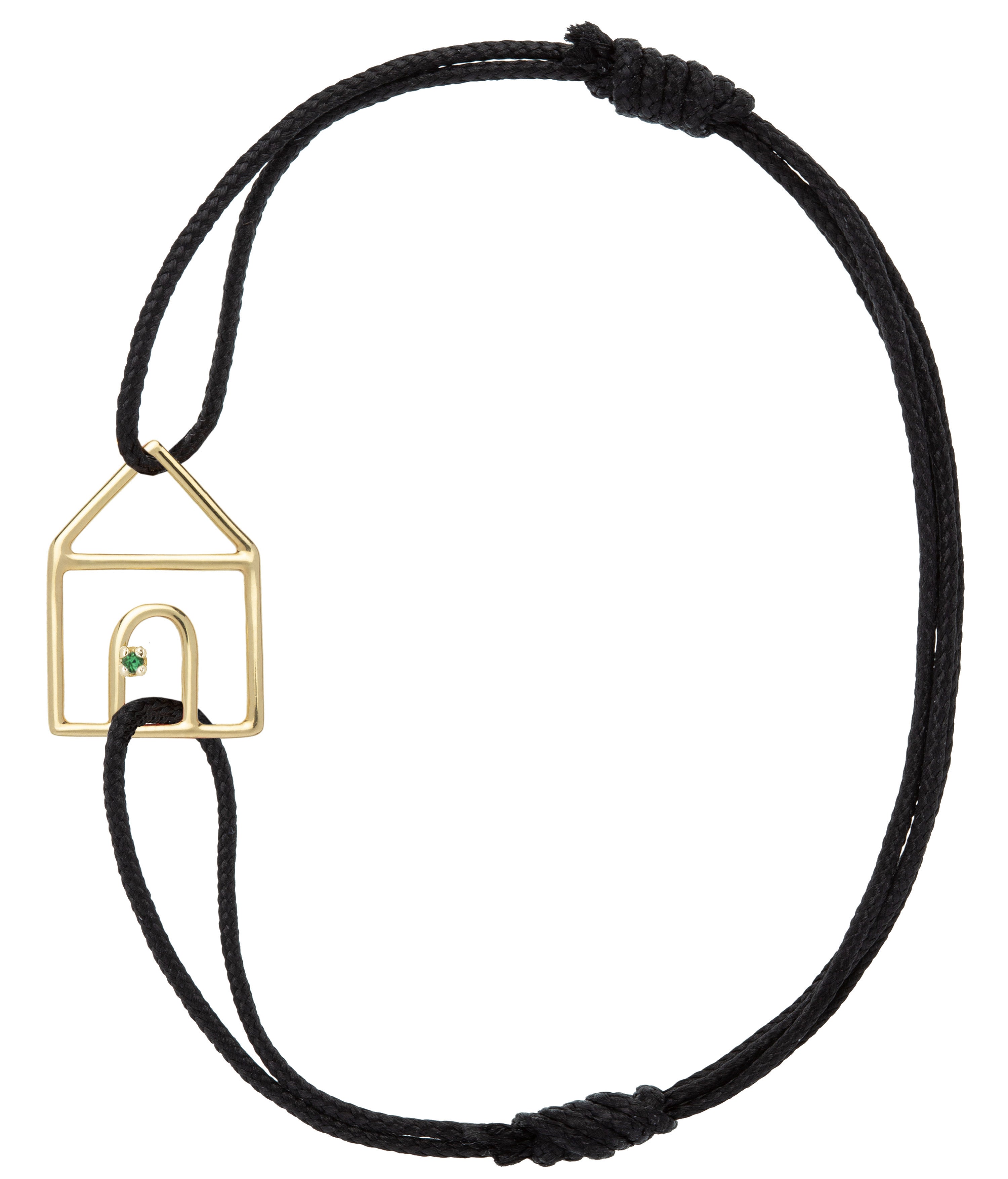 Casita Esmeralda cord bracelet is one of our most iconic pieces. The elegance of this bracelet is unique thanks to the delicate lines of our little house with a central emerald. We suggest you to wear it with our Manzana (apple), so to bring the perfect balance between elegance and freshness to your look.