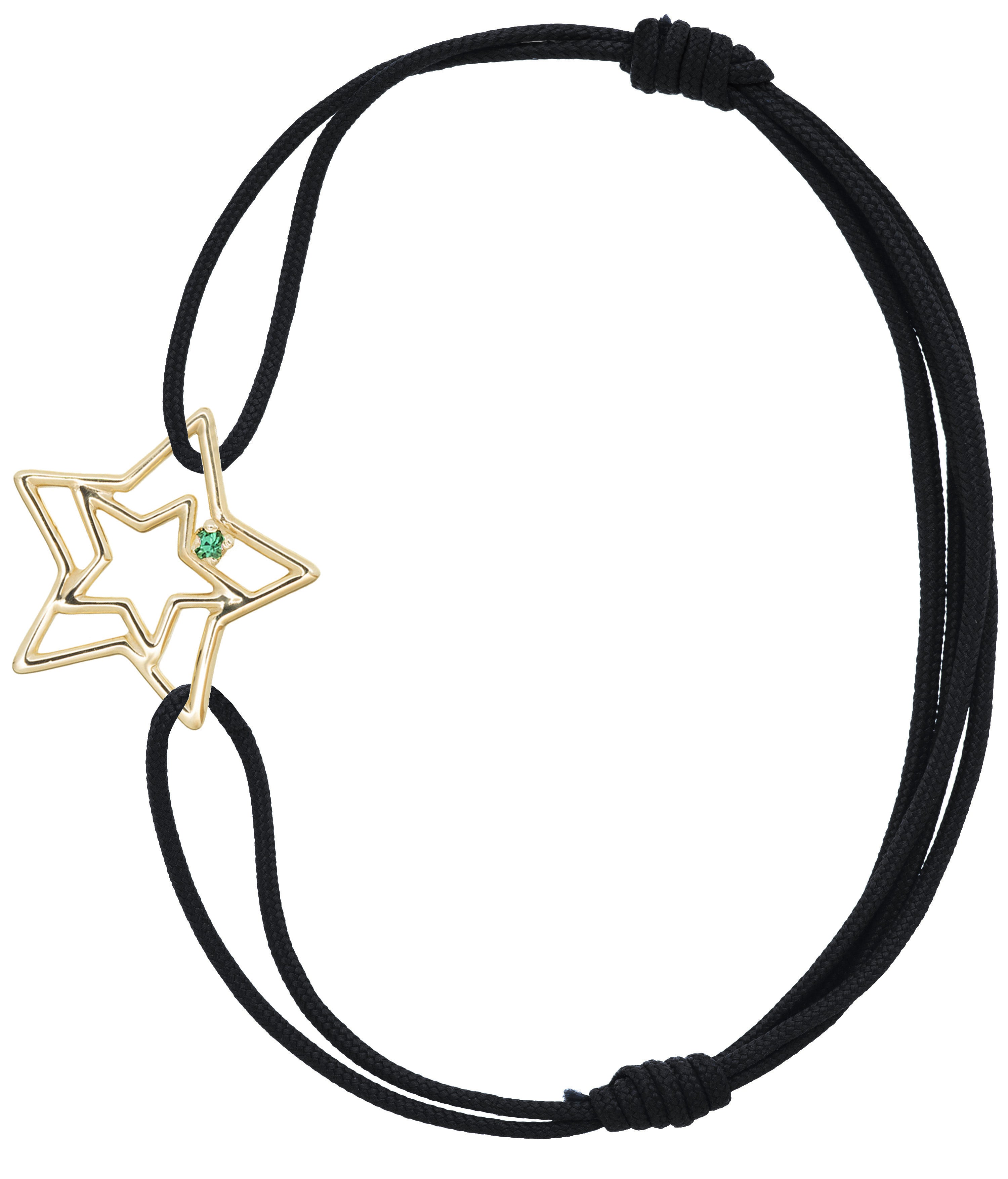 A delicate cord bracelet featuring the Estrella, a star shaped charm with a sparkling emerald stone.