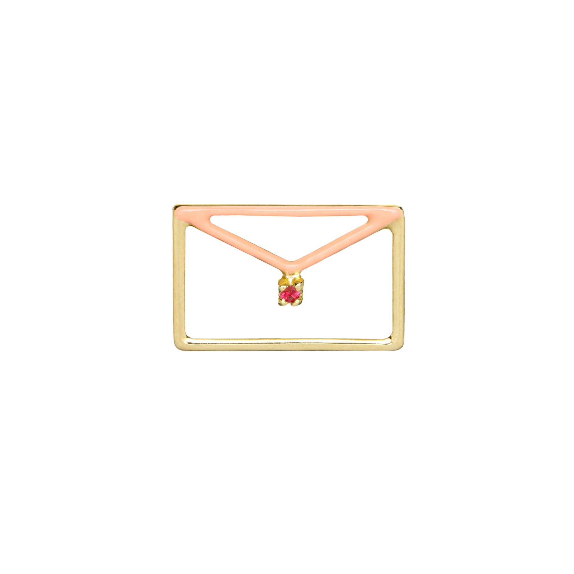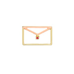 Carta is a gold letter-shaped charm, with strawberry pink enamel and ruby stone in the center. Get it is a love letter to yourself or someone special!