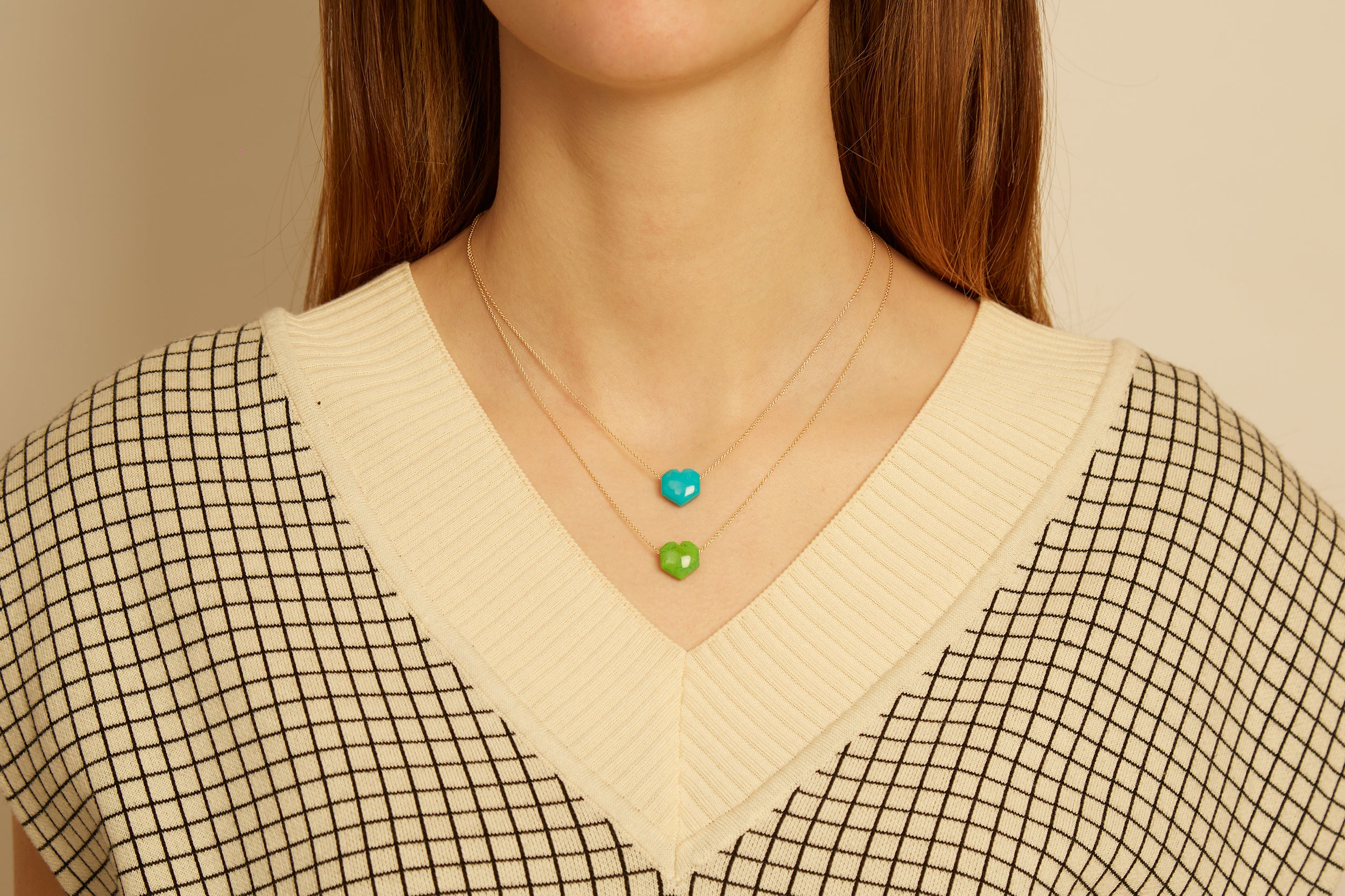 A fun and quirky idea of what love is for Aliita! The Corazón necklace with a green turquoise heart is perfect to get for someone special in your life!