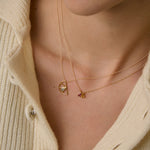 Two stones, one story. The Bi Gota necklace features a harmonious pairing of pear-cut citrine and pink tourmaline stones — a radiant drop of warm light alongside a soft blush of pink. Suspended from a fine chain, this necklace captures the delicate balance between vibrance and tenderness, energy and calm.