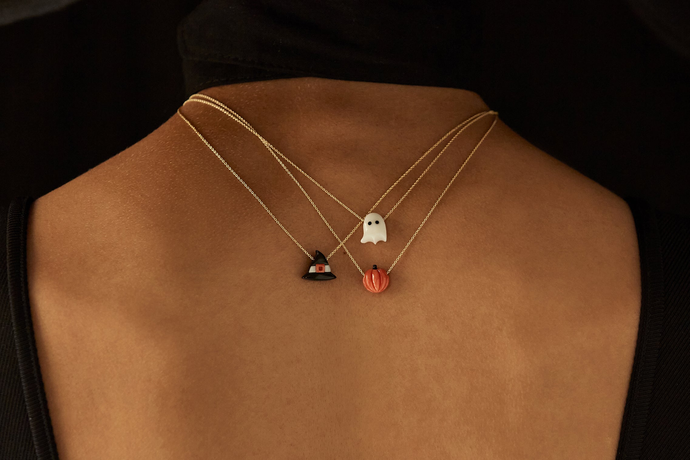 Take your dusty cauldron, we are about to prepare a special potion. Wearing our Bruja necklace, a spooky hat in coral and black marble, you will be the most powerful witch in town. Get ready for Halloween night!