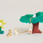Hop into elegance wearing our Conejito Bold necklace. This playful yet refined piece features a beautifully crafted rabbit-shaped pendant, enameled in white on the front. A symbol of new beginnings, charm, and the joys of the countryside, this necklace adds a touch of whimsy and grace to any look.