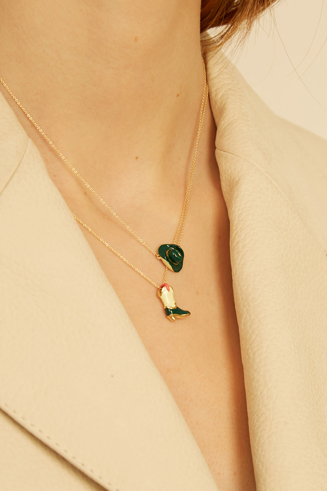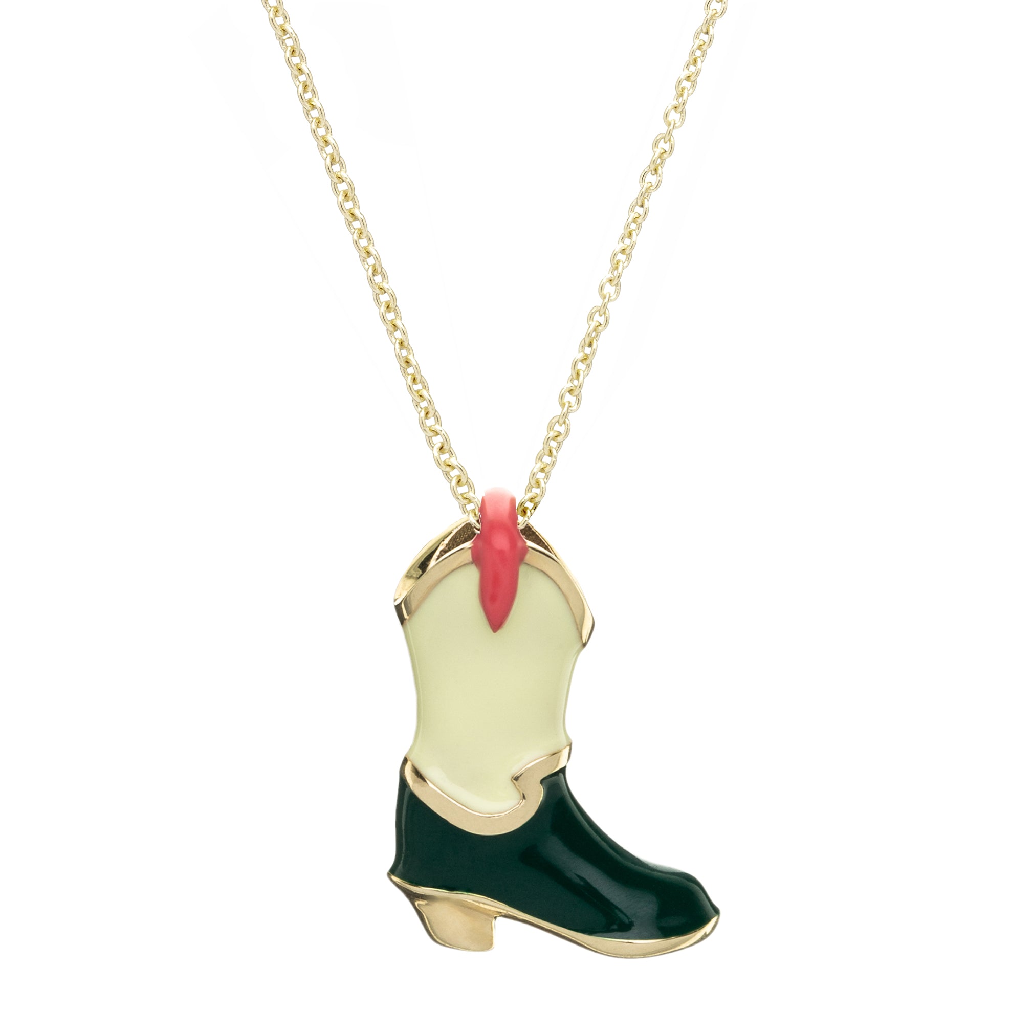 Yeehaw! Whether you're a cowgirl at heart or just looking to add a little bit of Western flair to your outfit, our Cowboy Boot necklace is sure to do the trick. These chic enamel color palette will make you stand out from the crowd, and the detailed design of the boot is sure to turn heads. So saddle up and ride into the sunset with this stylish necklace!