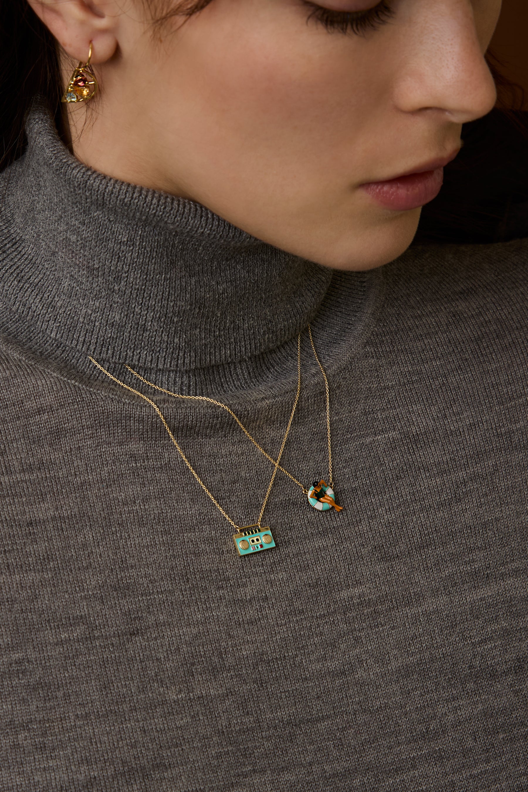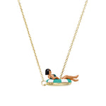 Float into summer with Flotadora—a playful gold pendant featuring a miniature girl drifting dreamily on a swim ring. Light, whimsical, and full of sunshine vibes, this necklace is your daily reminder to slow down and soak up the moment.
