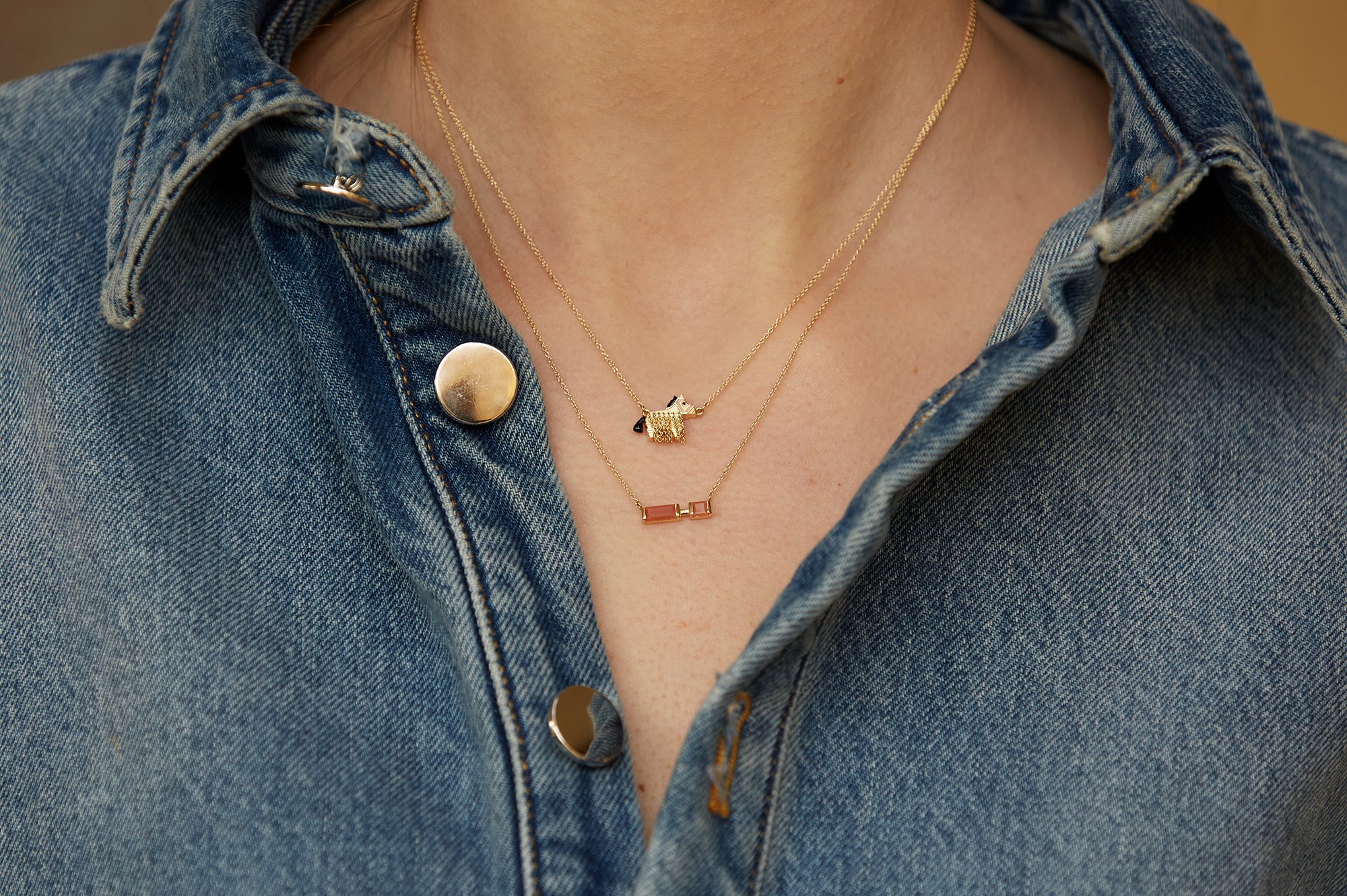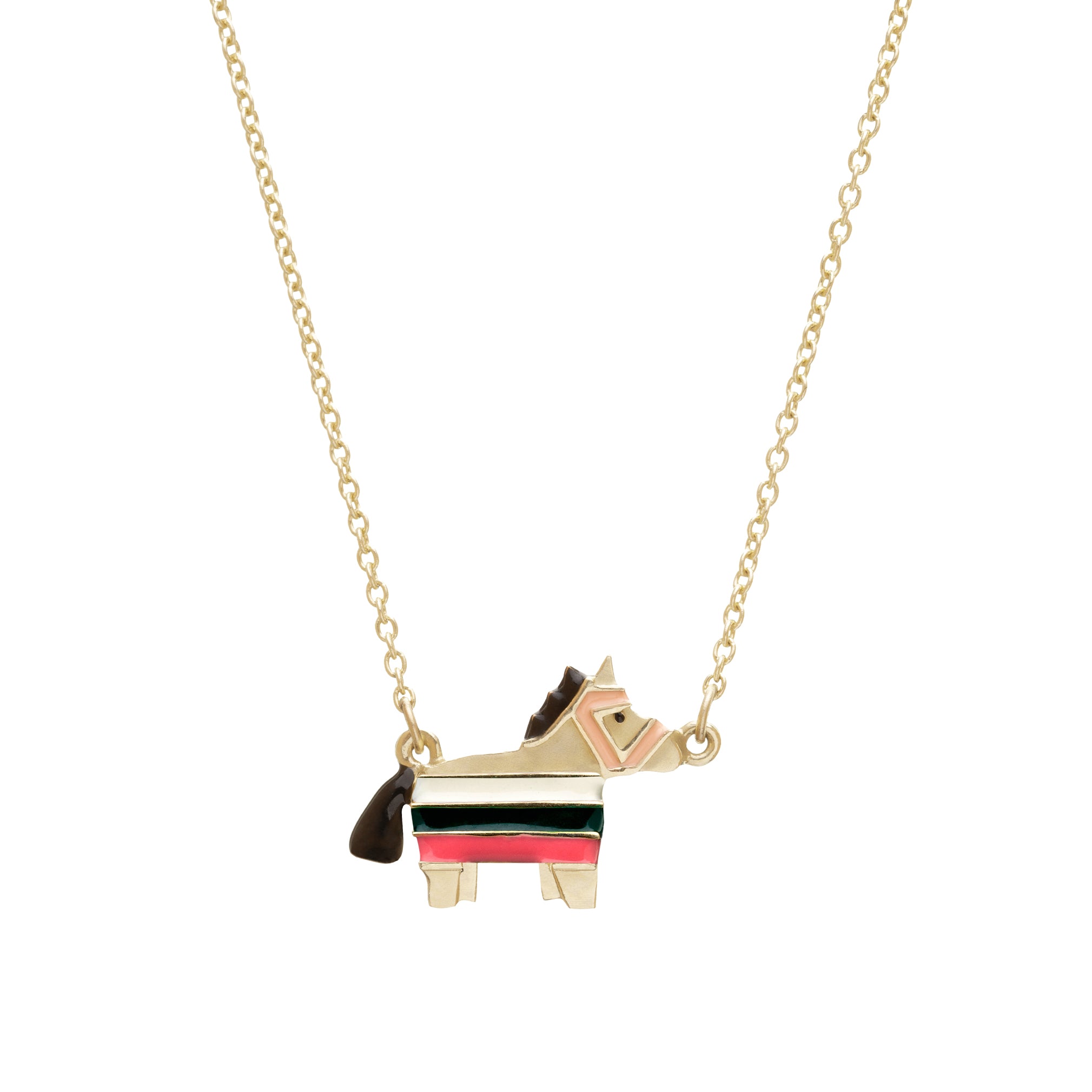 For the Piñata necklace Aliita's took inspiration from Venezuelan culture. Piñata with fringes is for real party people, they are made with tiny gold chains!