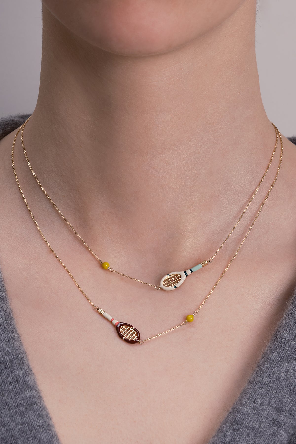 The Tennis Pelota necklace serves pure energy and passion! This delicate piece features a tennis racket–shaped charm paired with a tiny ball, capturing the playful spirit of the court in a refined jewel. Light, minimal and full of character, it’s designed for tennis lovers who carry their sport close to the heart, on and off the baseline.