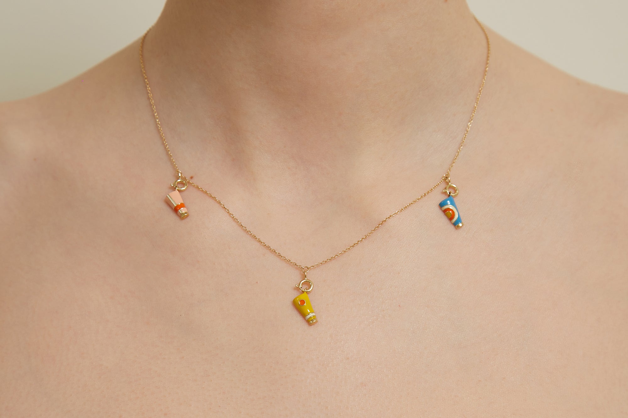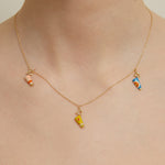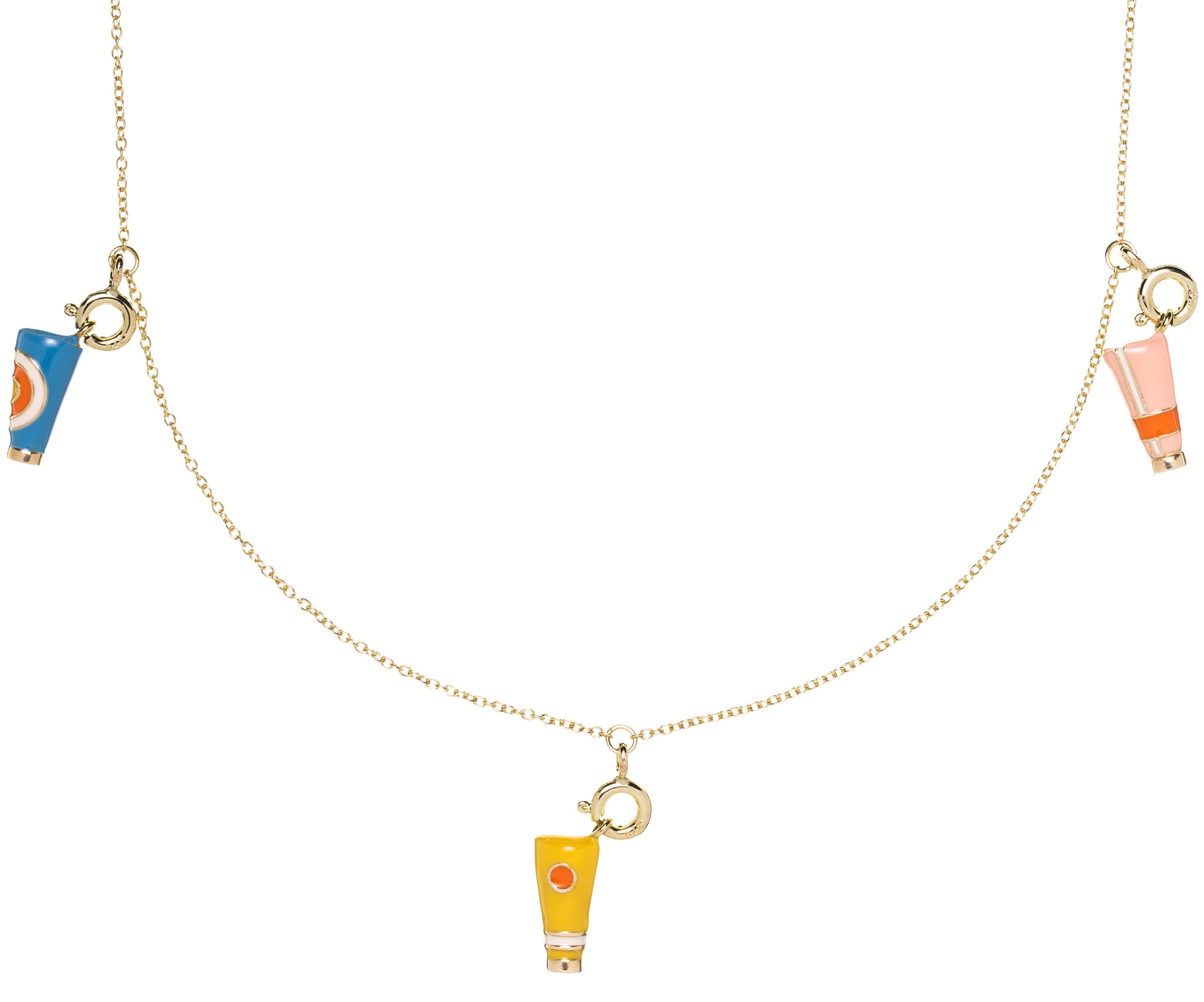 Material: 9kt yellow gold, Hand-painted in sky blue, daisy yellow, strawberry pink and sunrise orange enamels
