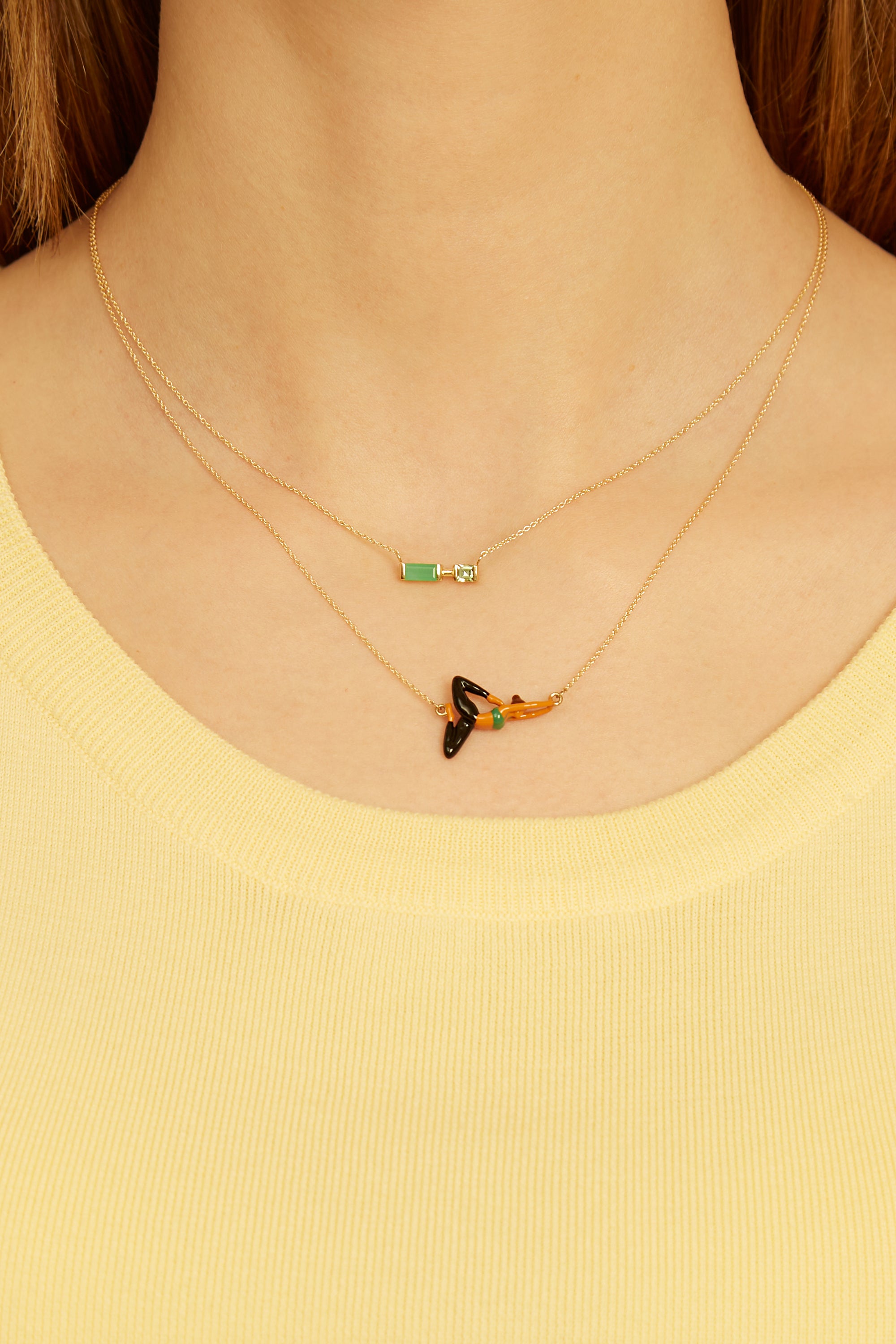 Material: 9kt yellow gold, Hand-painted in pistachio green and deep black enamel