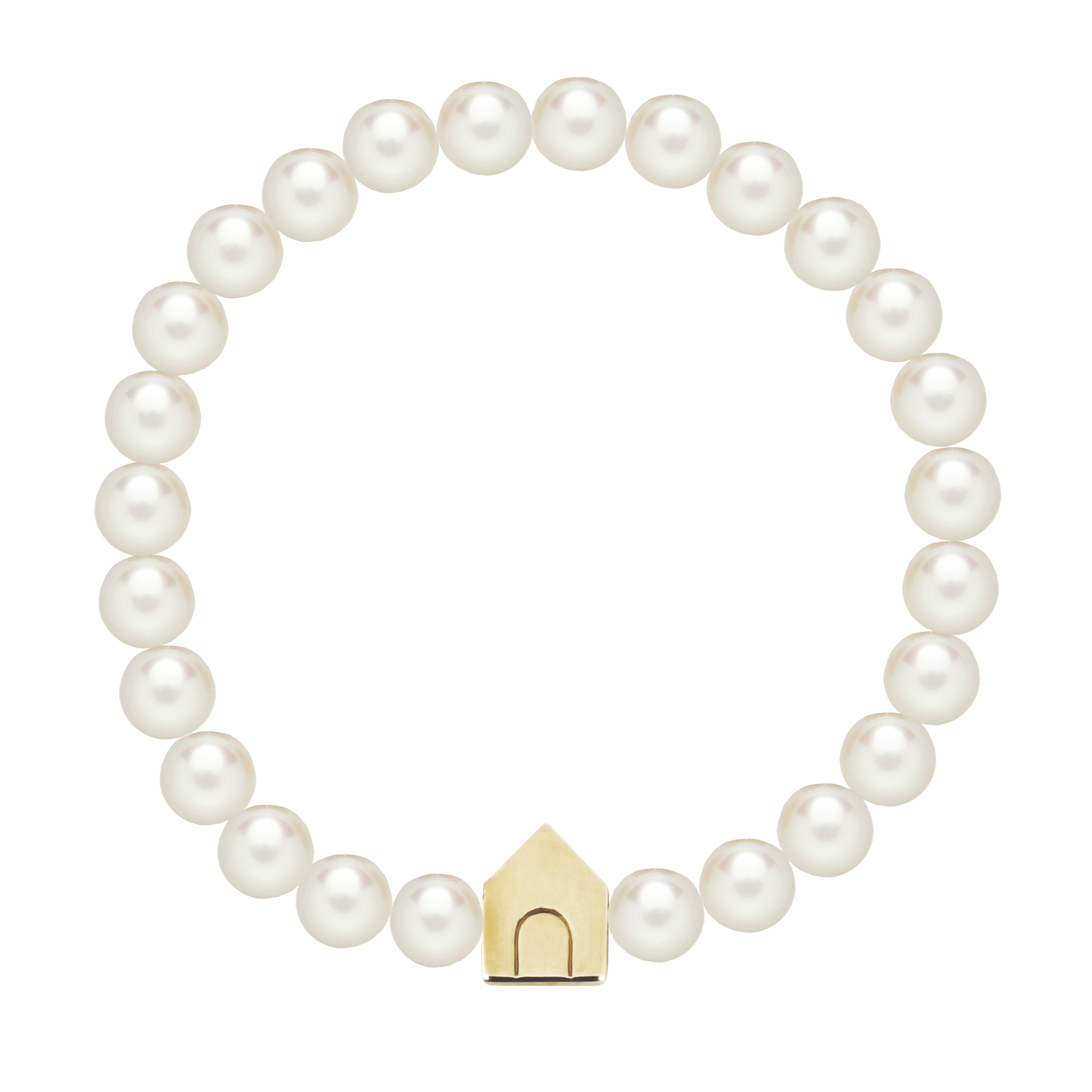 Casita Bold Perla is a joyful ode to elegance, where luminous white flat pearls meet a playful gold house-shaped charm, our iconic symbol of memories, warmth, and personal stories. Designed as an easy-to-wear elastic bracelet, it slips on effortlessly while adding a refined yet spirited touch to any look. The contrast between the soft glow of pearls and the bold golden detail creates a modern, versatile piece that feels both timeless and fresh. Perfect for stacking!