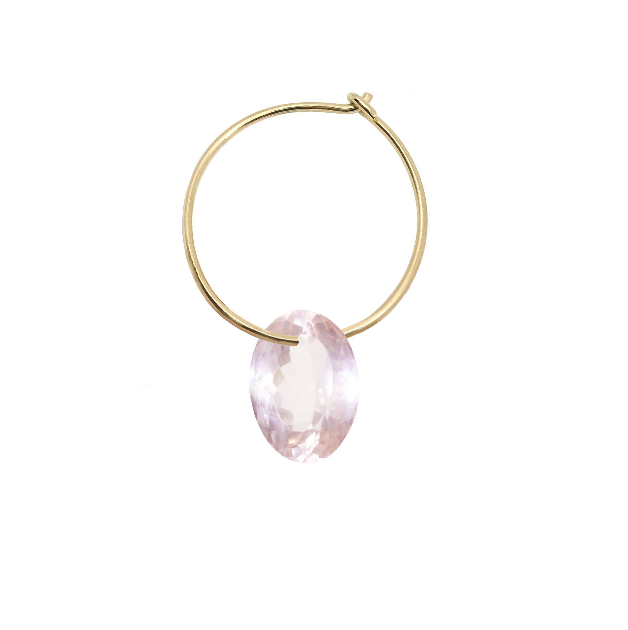 This gold hoop earring features a delicate pink quartz pendant. The perfect balance of warmth and femininity—designed to glow with you, day or night.