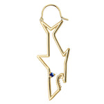 9kt yellow gold Tiburon Zafiro Azul Maxi (shark) single earring with a blue sapphire eye