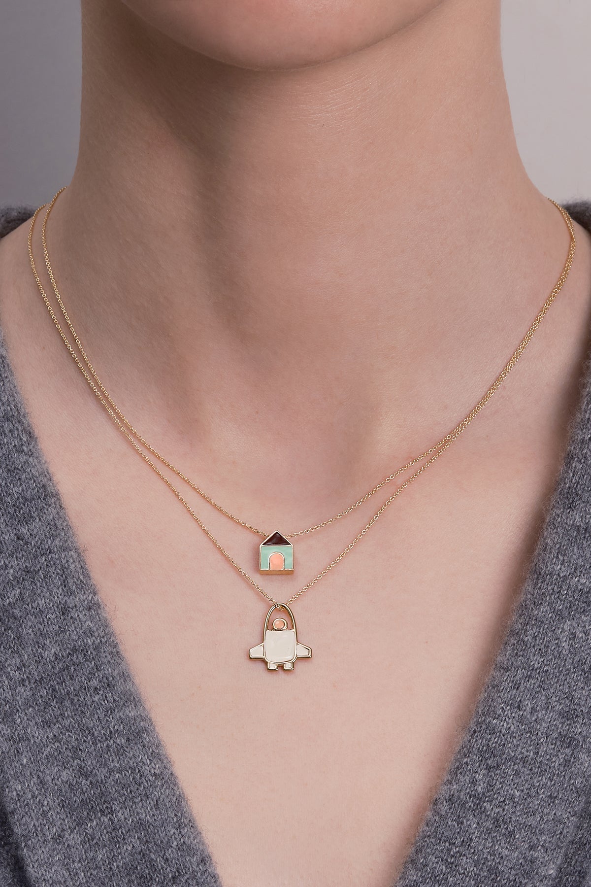 Casita Bold is a fresh expression of color and character, where a sleek gold chain meets a house-shaped charm enameled in unexpected shades of mint green and deep burgundy. Minimal yet full of attitude, this necklace plays with contrast, clean lines, glossy color, and warm gold tones, to create a piece that stands out effortlessly. Light on the skin and easy to style, it layers beautifully or shines on its own, adding a modern, artistic touch to everyday looks. Casita Bold is more than a detail, it’s a little statement of individuality, designed to be worn your way.