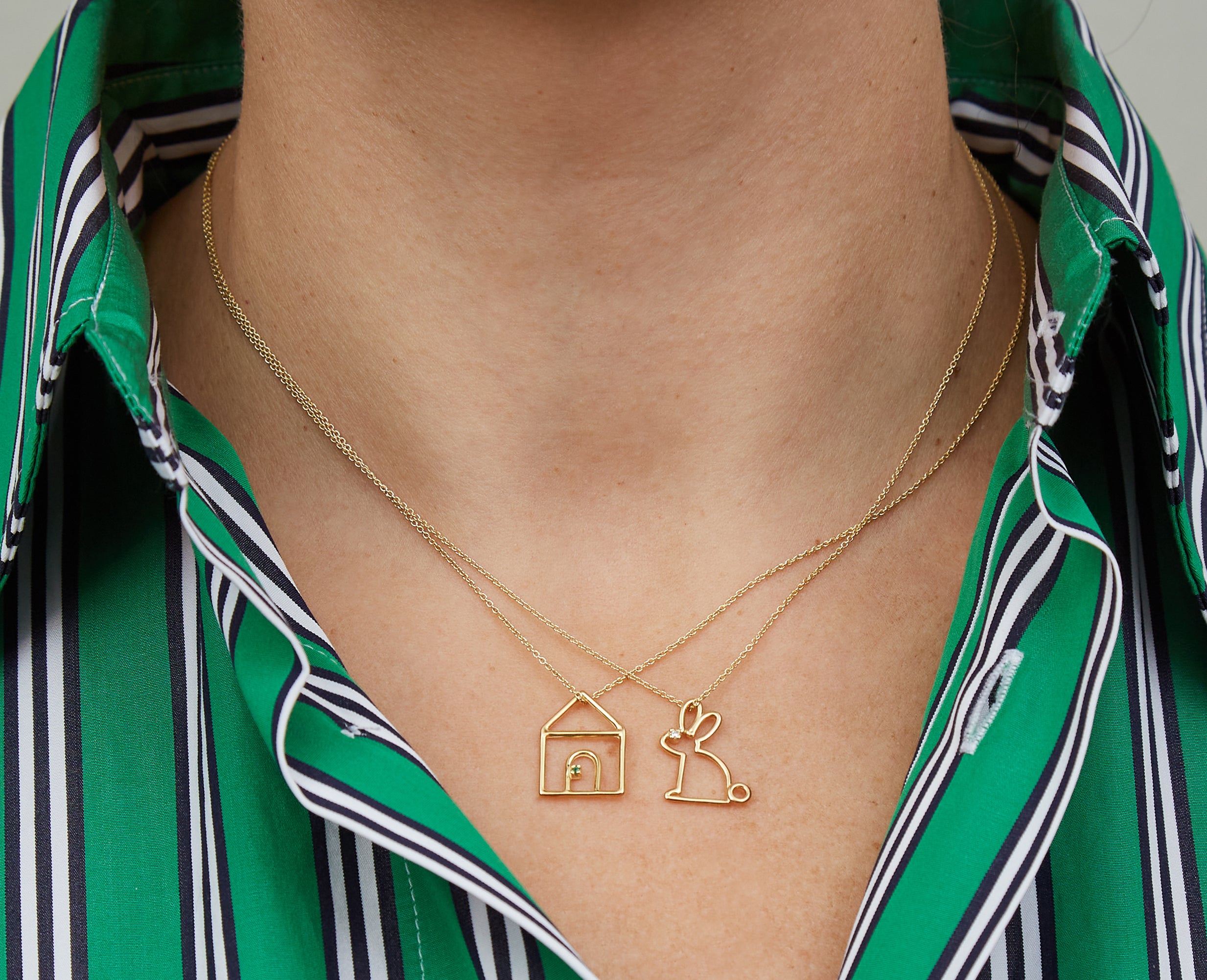 Casita Esmeralda is one of Aliita's most iconic jewels. It stands out from the other Casita (little house) necklaces for the presence of a delicate and fascinating emerald. We suggest you to wear it with our Luz (light bulb) necklace to bring the right brightness and serenity to your home.