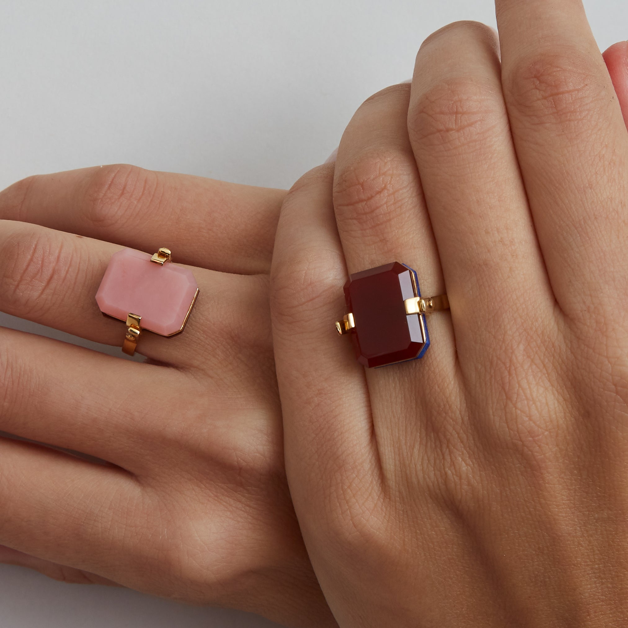 DECO SANDWICH CARNELIAN + PINK OPAL RING
