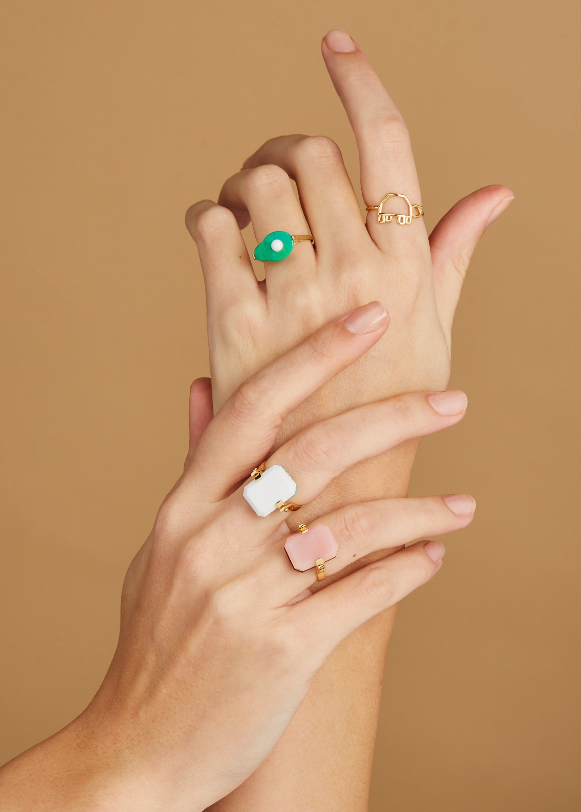 Deco Sandwich is our most iconic ring, which combines elegant 30's Deco inspiration with a contemporary twist given by the rolling effect. Carnelian will help you believe in yourself while pink opal symbolizes generosity and altruism. Pair it with our Diaspro rings to feel the benefits of the stones combined!