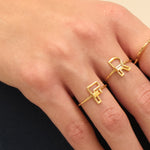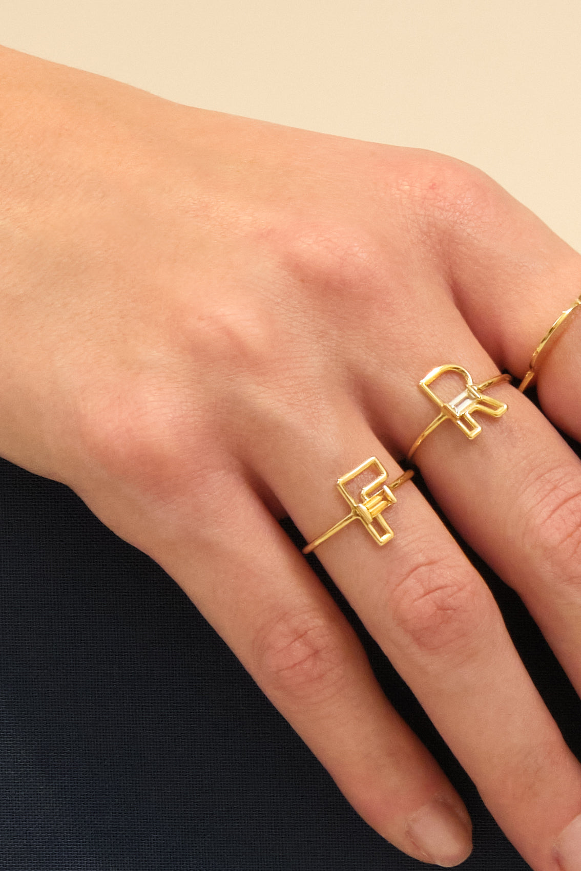 Step into the world of ideas with this luminous gold ring, featuring a refined letter "F" set with a radiant citrine stone. Part of our captivating alphabet ring collection, the "F" stands for fascination, fresh thinking, and forging meaningful connections. Designed for those who celebrate intellect and creativity, this ring is a charming nod to your inner curiosity. Wear it proudly—as a stylish reminder that being a little nerdy is a beautiful thing.