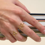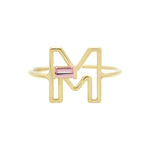 Elegant and full of meaning, the Letra "M" ring features a polished gold band adorned with a pink tourmaline stone and a sculpted "M" initial. A signature piece from our alphabet ring collection, it honors a love for learning, literature, and self-expression. Ideal for scholars, creatives, and those whose name begins with "M," this ring captures the beauty of intellect and imagination. Wear it solo for a refined statement, or combine it with other letters to craft words that reflect your personal journey.