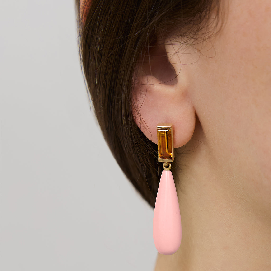 DECO MAXI DROP CITRINE + PINK OPAL EARRINGS