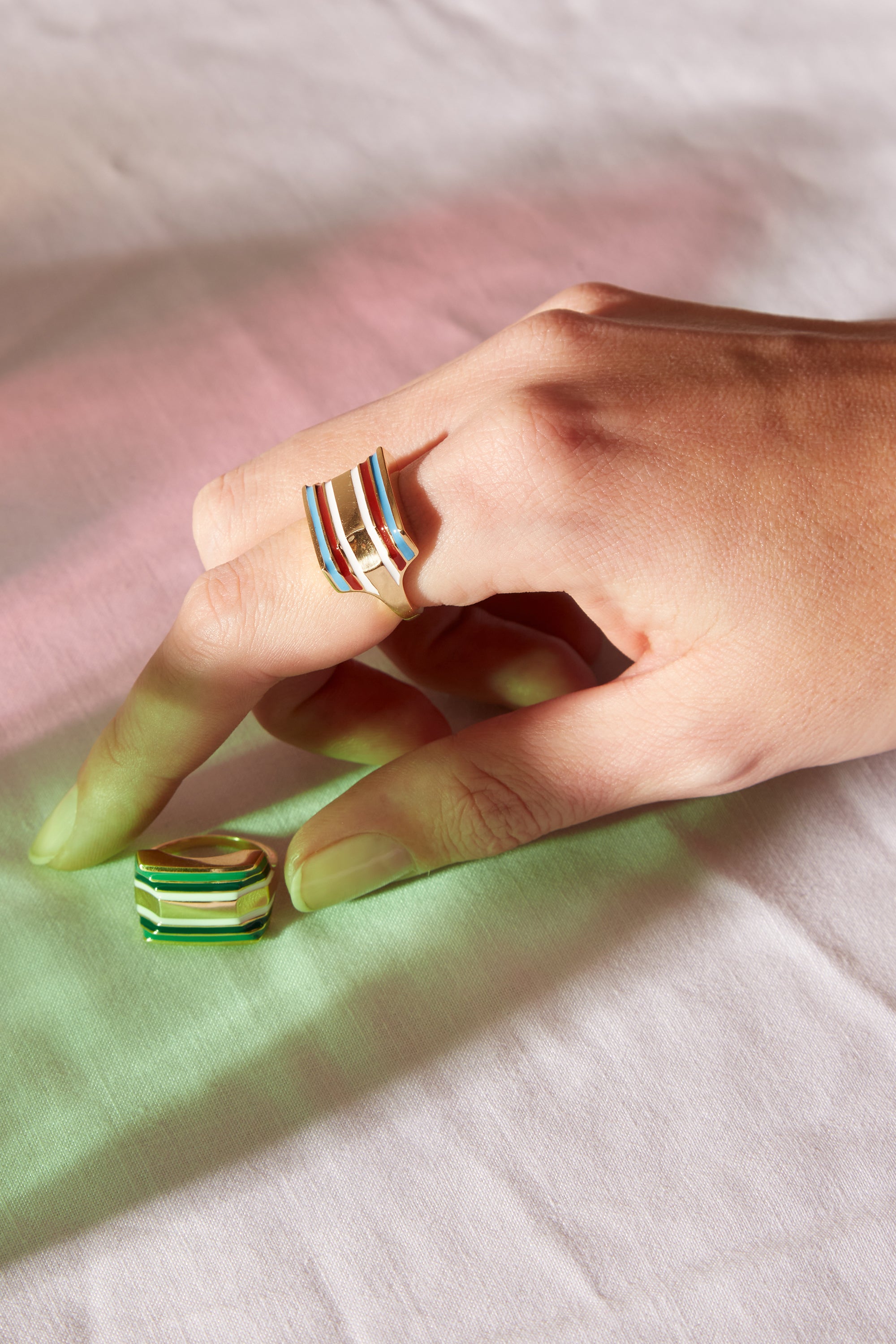 A ring that tells us about summer and its bright colors! Inspired by the typical striped pattern of beach umbrellas, Colores ring is definitely one of a kind!