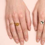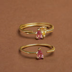The Aro C Gota ring with citrine shines with confident simplicity. Its squared, open form curves gently around the finger, crowned with a pear-cut citrine that radiates warmth. Wear it solo or pair it with the pink tourmaline version—together, their shapes and stones fit like they were always meant to. A perfect match!
