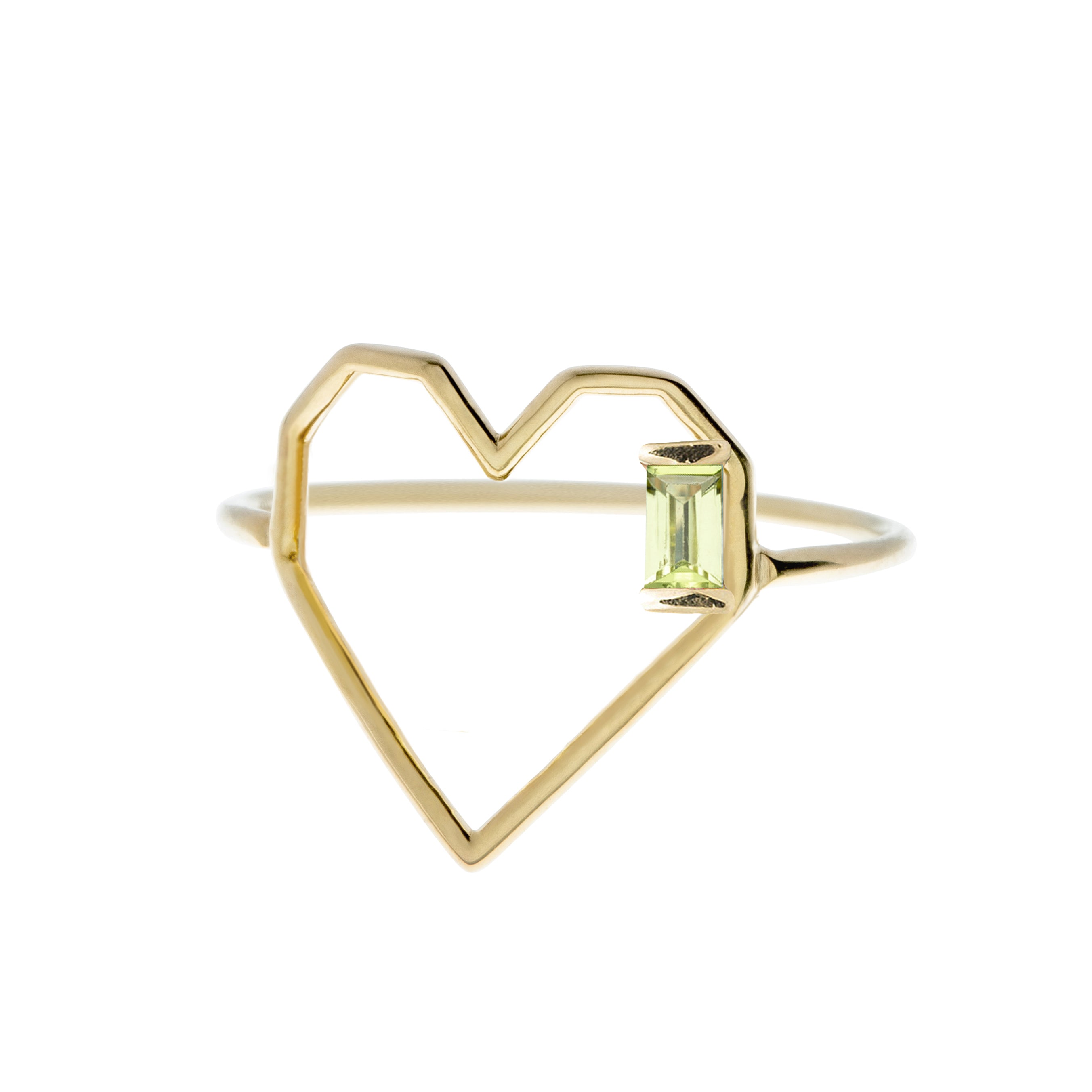 The Corazón (heart) with peridot baguette stone irradiates shine, bringing good vibes! Your Corazón will always be a symbol of love and joy!