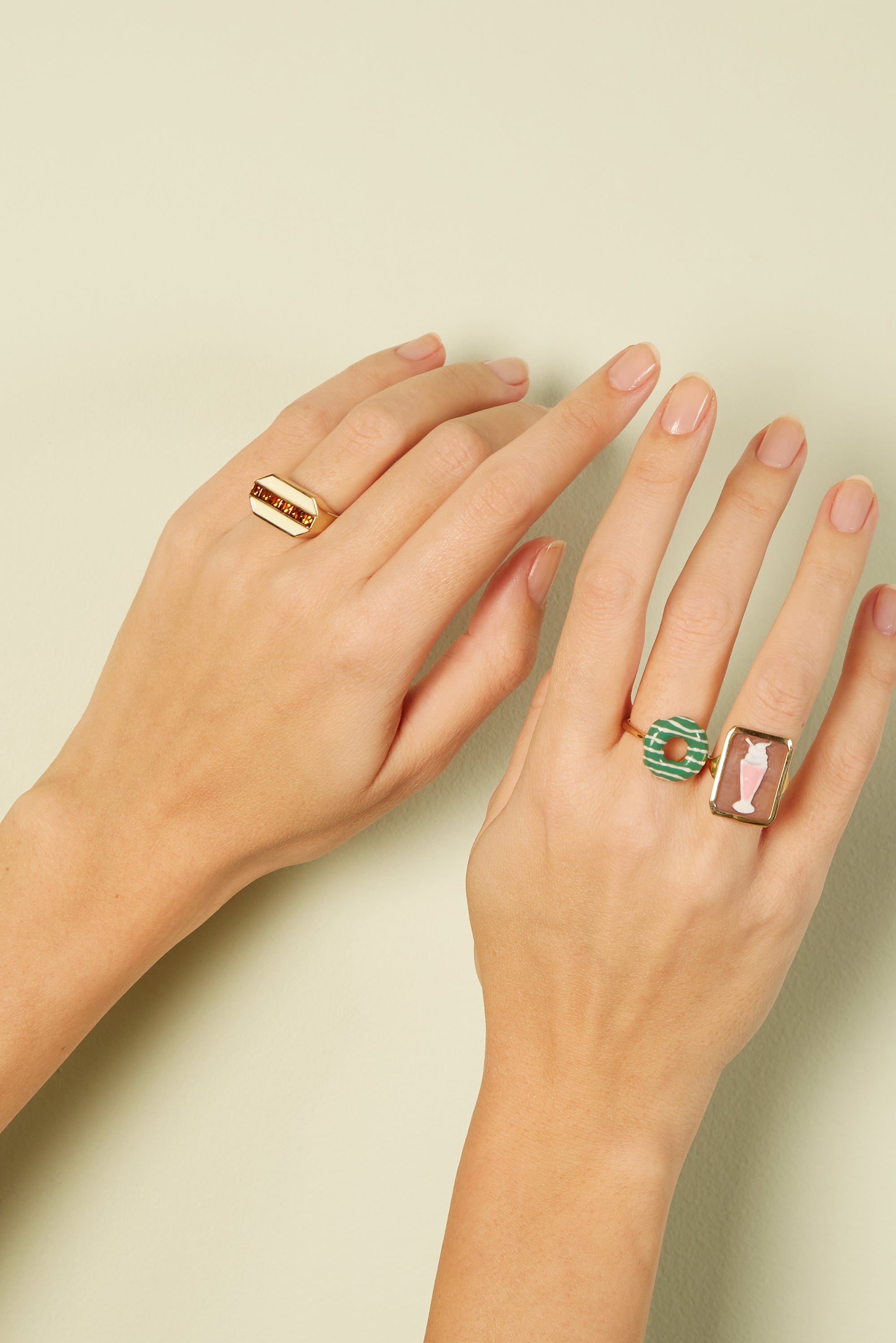 Material: 9kt yellow gold, Citrine stones in carré cut, Hand-painted in sugar yellow enamel