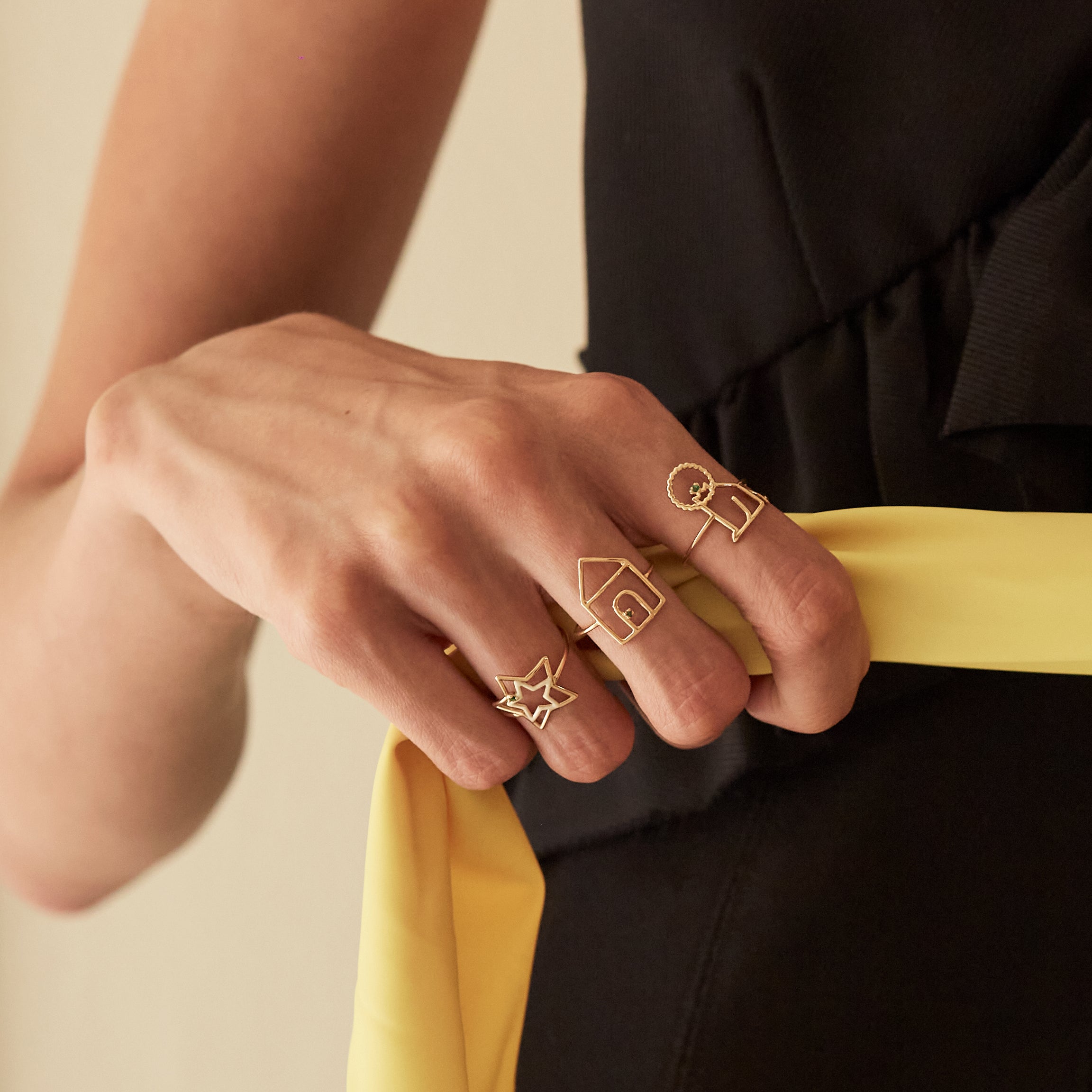 In this page you will find Aliita's rings complete selection, all made in 9kt gold entirely by specialized goldsmiths in Italy. They are elegant and timeless, with precious stones, hand-carved coral and porcelain cameos created with the most innovative techniques. Unique and refined rings, discover our Corazón (heart), Colores and Deco Maxi Baguette with green amethyst. Enjoy composing your ideal combination with our necklaces, bracelets and earrings!