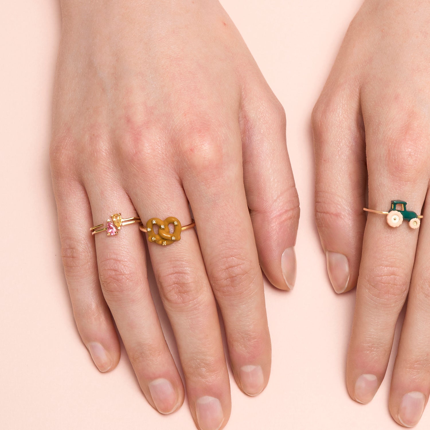 In this page you will find Aliita's rings complete selection, all made in 9kt gold entirely by specialized goldsmiths in Italy. They are elegant and timeless, with precious stones, hand-carved coral and porcelain cameos created with the most innovative techniques. Unique and refined rings, discover our Corazón (heart), Colores and Deco Maxi Baguette with green amethyst. Enjoy composing your ideal combination with our necklaces, bracelets and earrings!