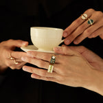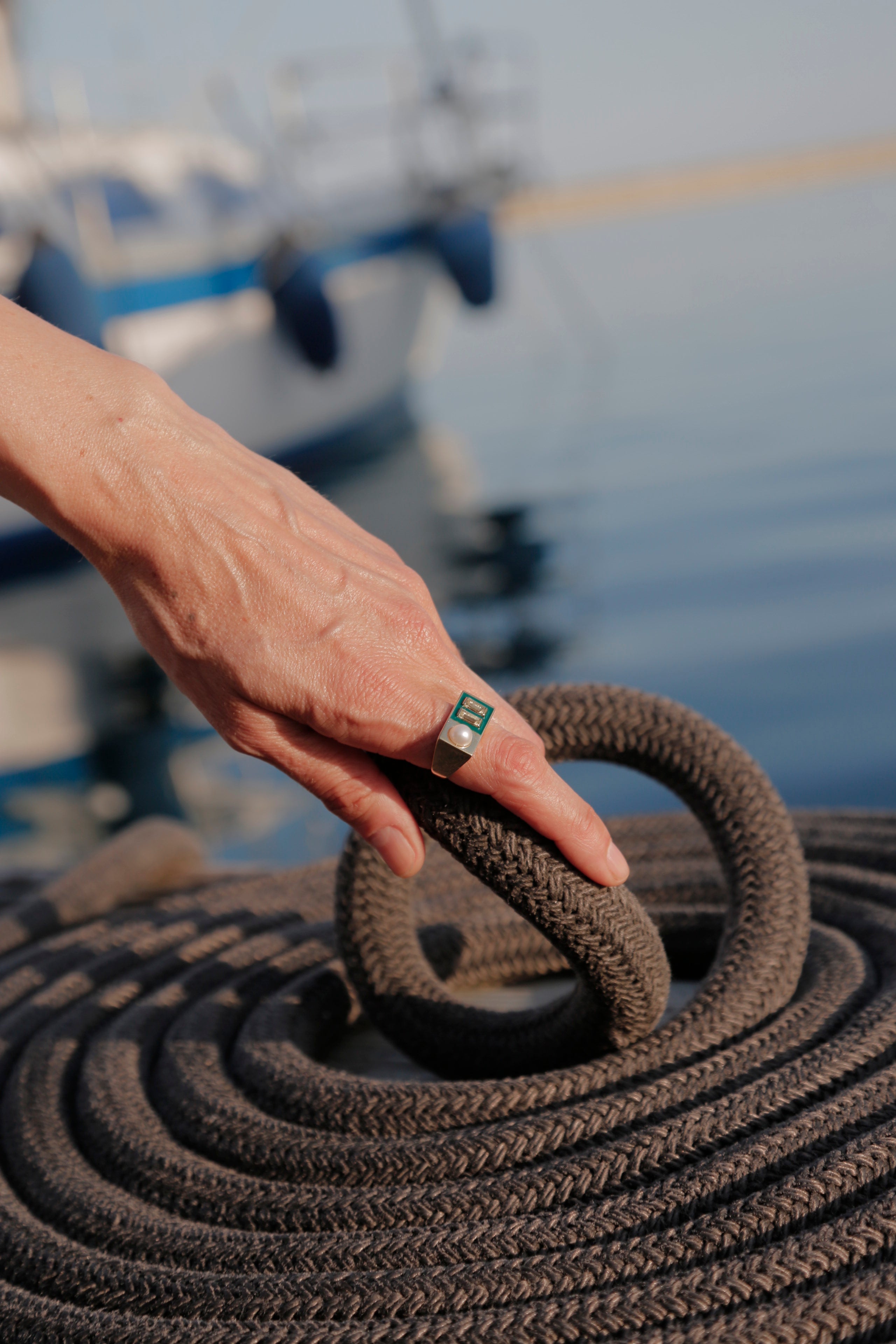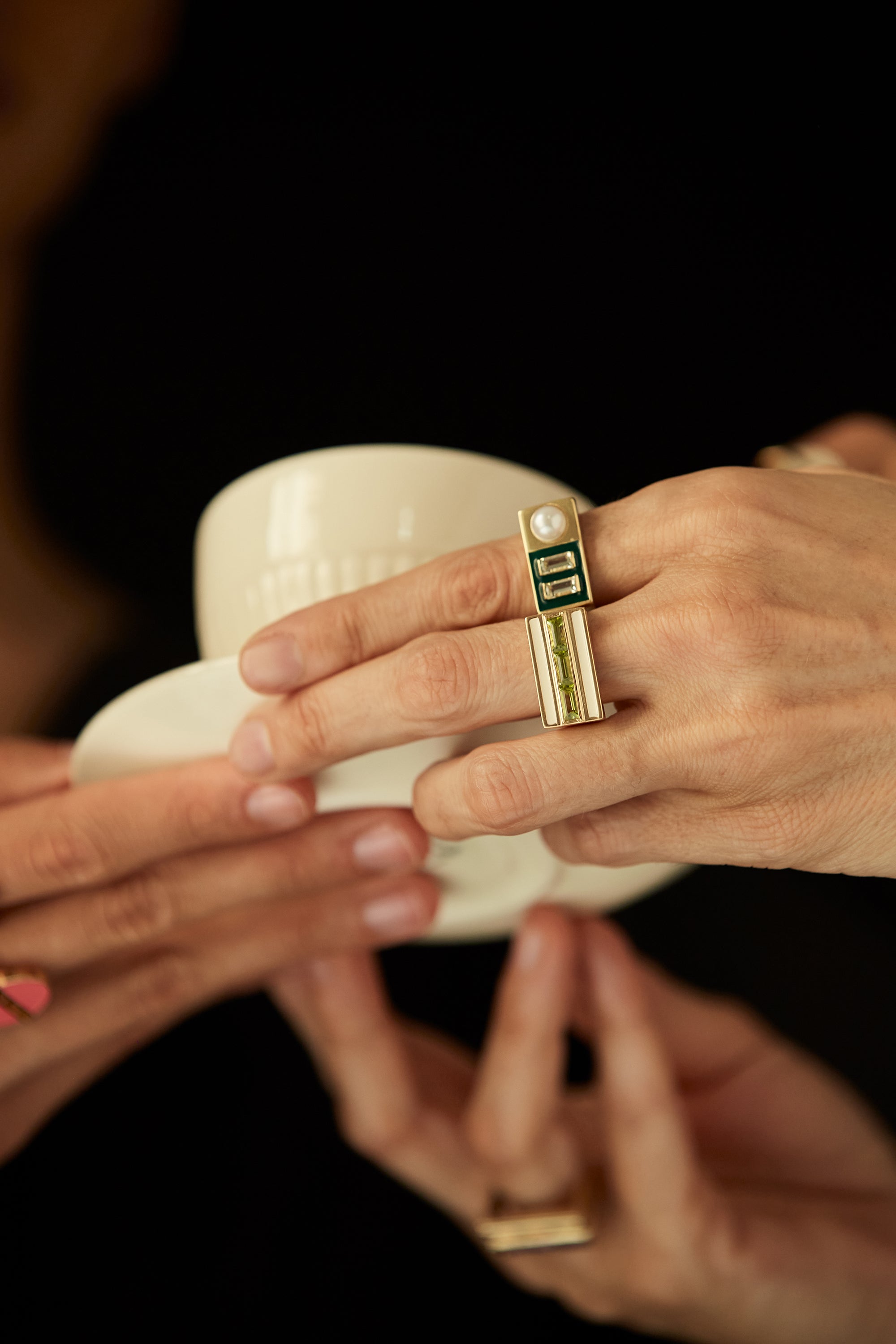 Aliita immagina un suo paradiso su misura: una terra felice eternamente baciata dal sole. In questo luogo magico l’anello Deco Piscina presenta perla e pietre baguette che sembrano galleggiare sull’acqua.
