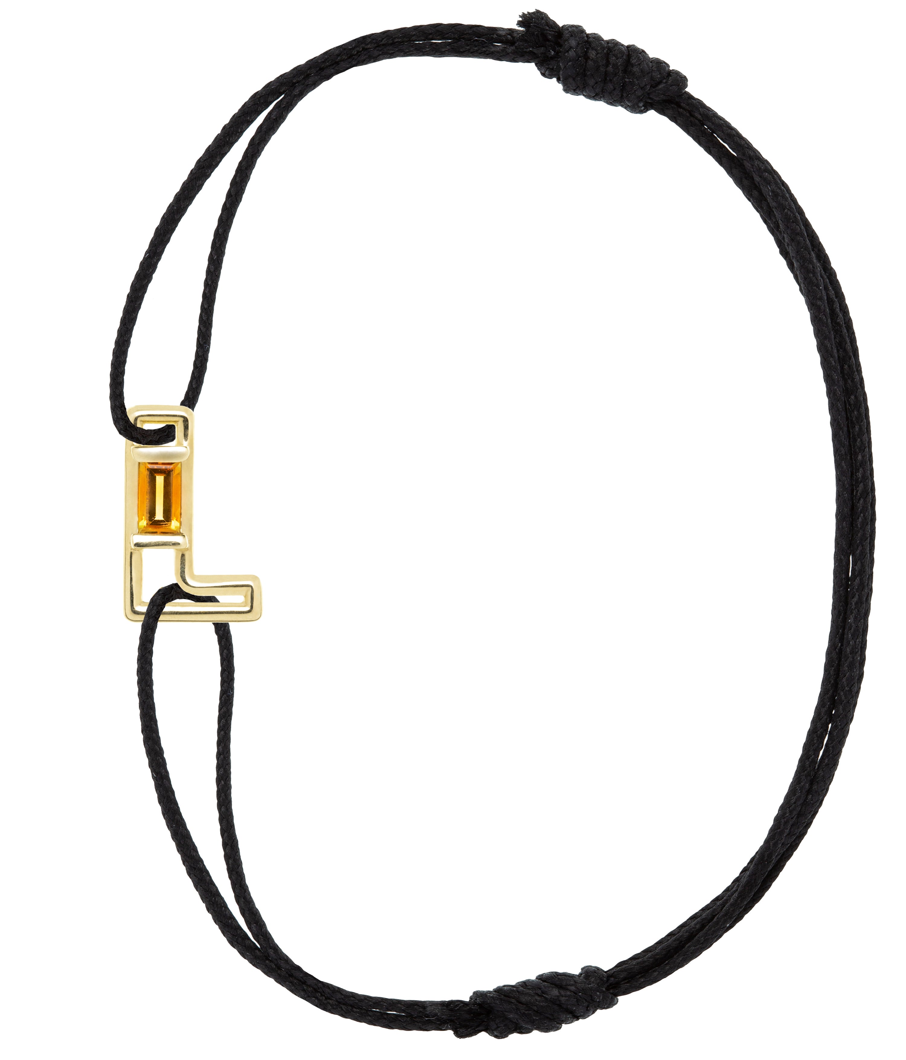 Celebra il tuo percorso accademico con il bracciale Letra L della nostra collezione Alma Mater. Questo gioiello minimal presenta una sottile corda nera regolabile per una vestibilità perfetta e un elegante pendente in oro a forma di lettera "L". Il pendente è splendidamente decorato con una pietra citrino, che aggiunge un tocco di eleganza e calore. Abbinalo ad altri bracciali Letra per formare parole o iniziali significative, rendendolo un regalo pensato e speciale. È perfetto per chi ha un nome che inizia con la lettera L, rendendolo un dono sincero per amici o persone care.