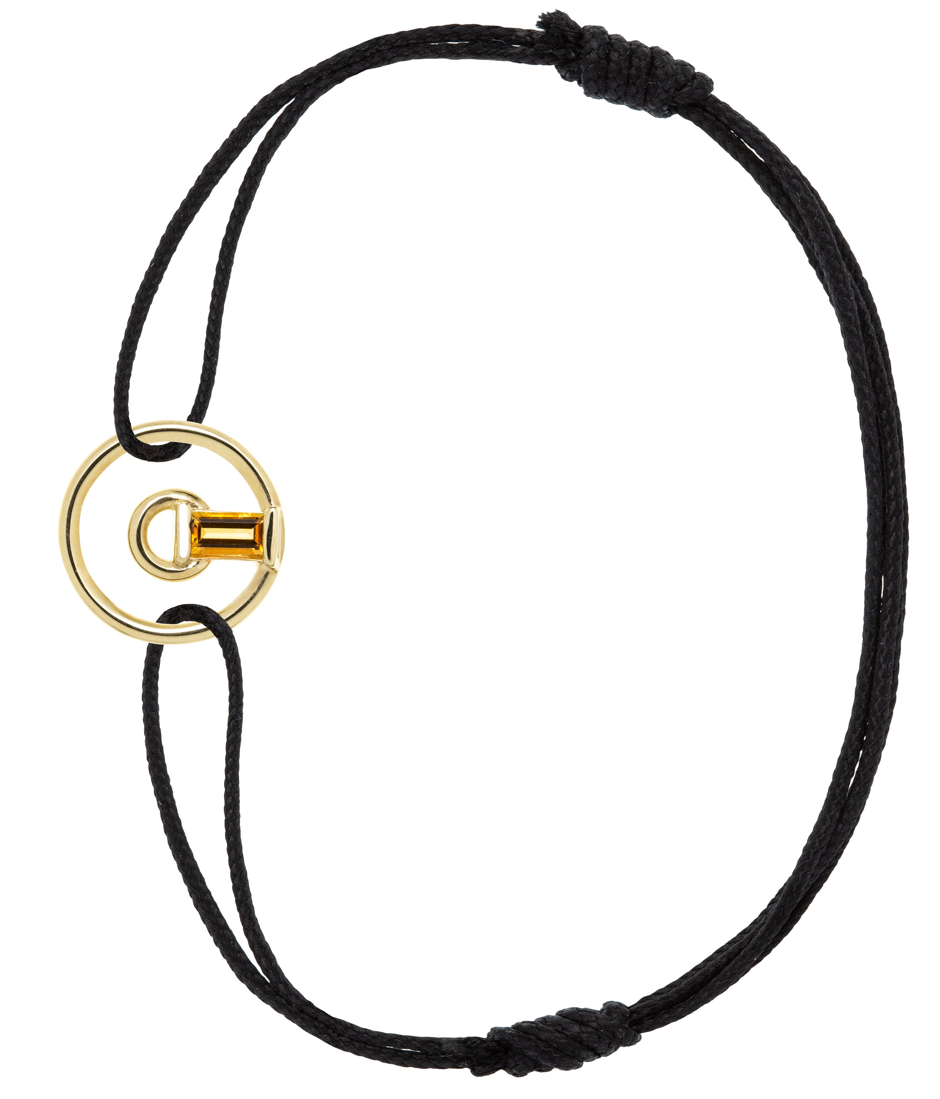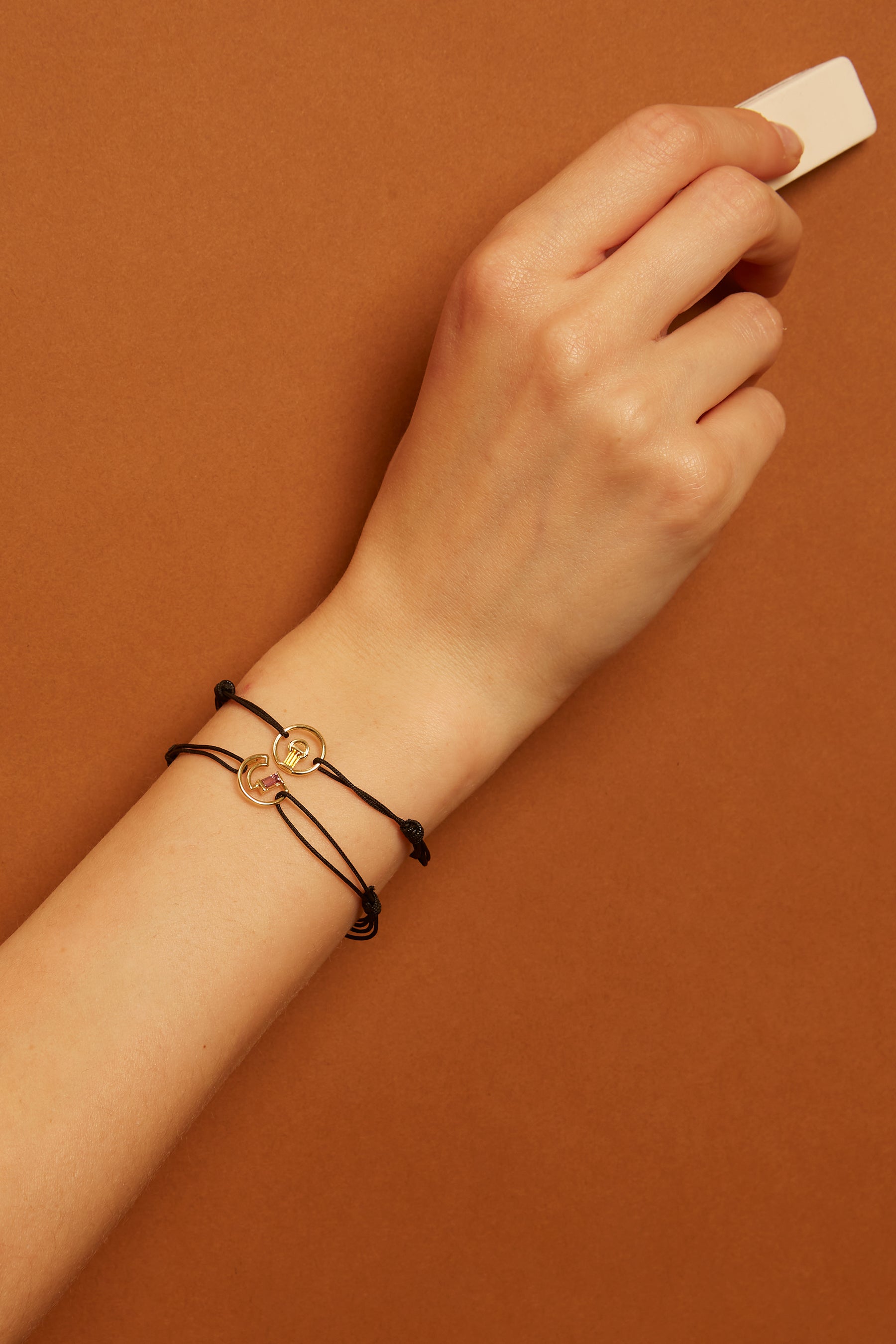 Realizzato con una delicata corda nera, questo bracciale regolabile presenta un pendente in oro a forma di lettera "O". Il pendente è arricchito da un radioso citrino, che cattura la luce magnificamente. Perfetto da abbinare ad altri bracciali Letra (lettera), la Letra O ti invita a raccontare la tua storia o a regalarlo a qualcuno di speciale. Un accessorio chic e significativo che aggiunge un tocco di eleganza a qualsiasi look.
