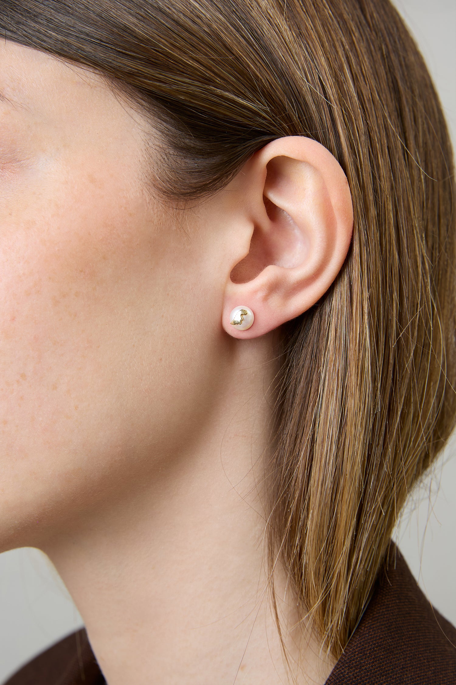 Gli orecchini Mini Bold Dino Perla presentano perle d’acqua dolce bianche e luminose, ciascuna con un piccolo dinosauro in oro al centro. Un allegro ricordo di estati passate a scavare nella sabbia, inseguire ombre e sognare mondi antichi. Per chi ha lo spirito dell’esploratore e ama l’eleganza con un tocco giocoso.