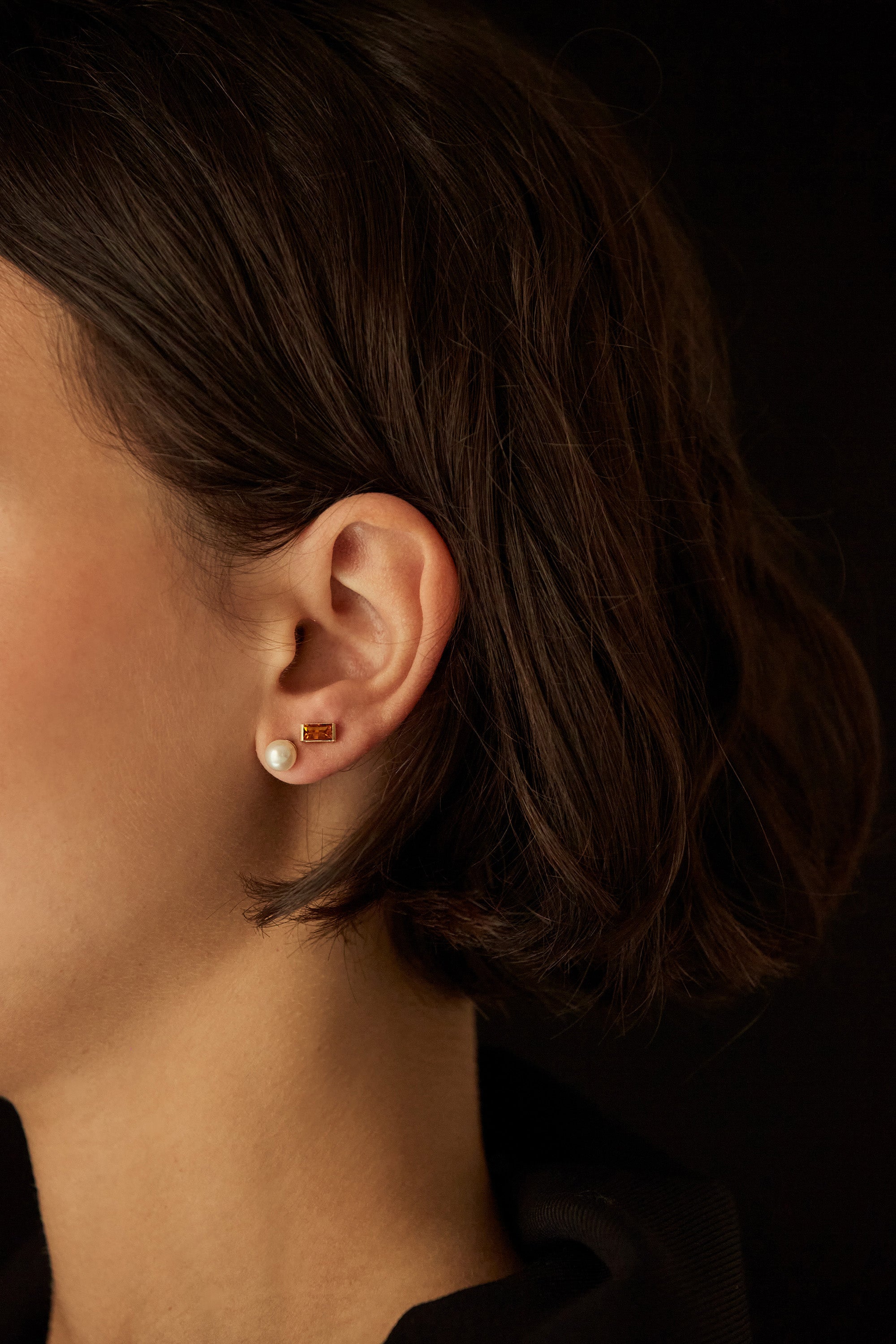 Orecchini eleganti e semplici con singole perla e pietra in taglio baguette. Sono perfetti se ami indossare più orecchini insieme!