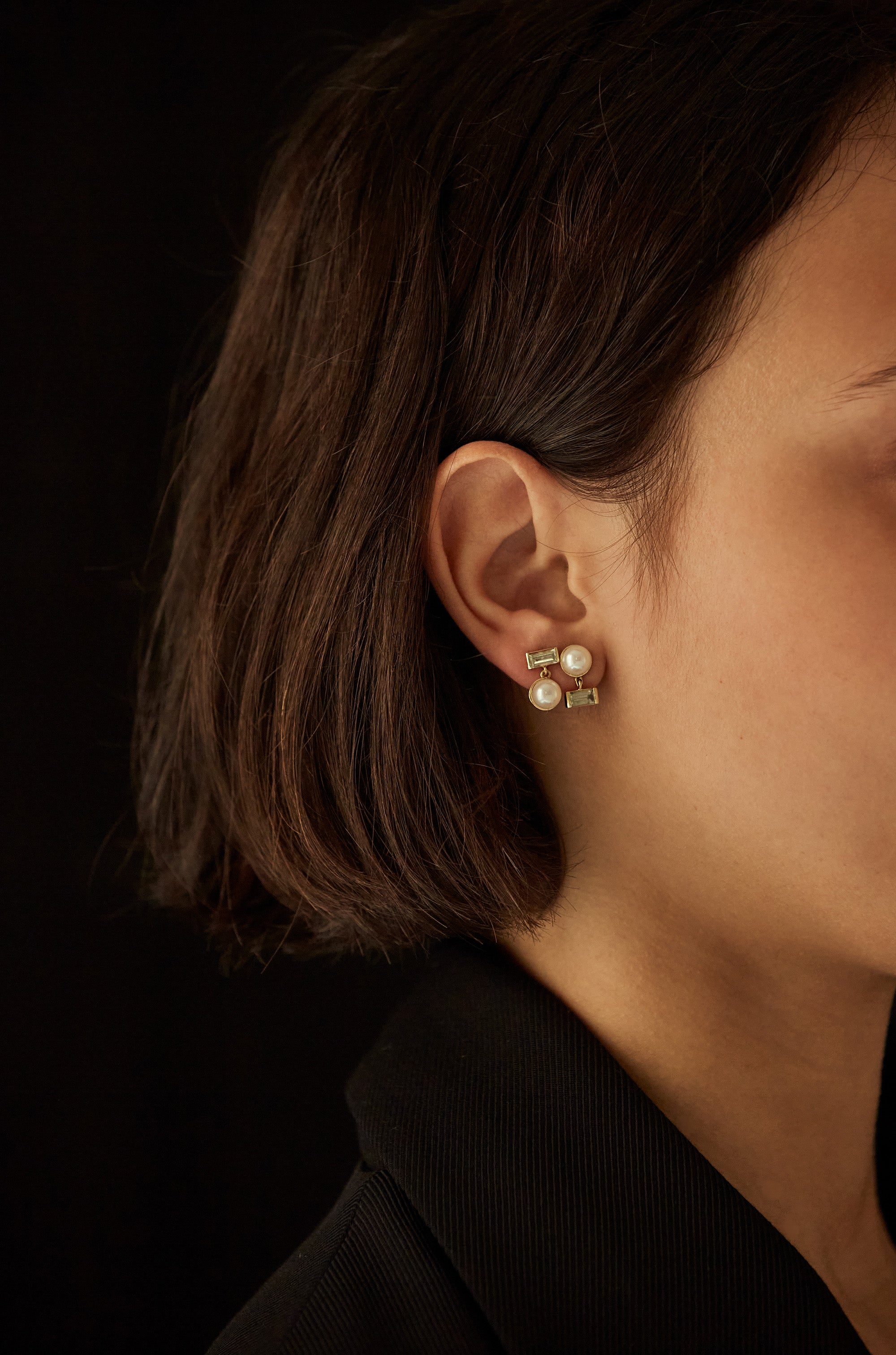 Gli orecchini Perla Baguette sono classici ma resi più moderni grazie alla posizione asimmetrica delle pietre. Sono orecchini assolutamente unici!