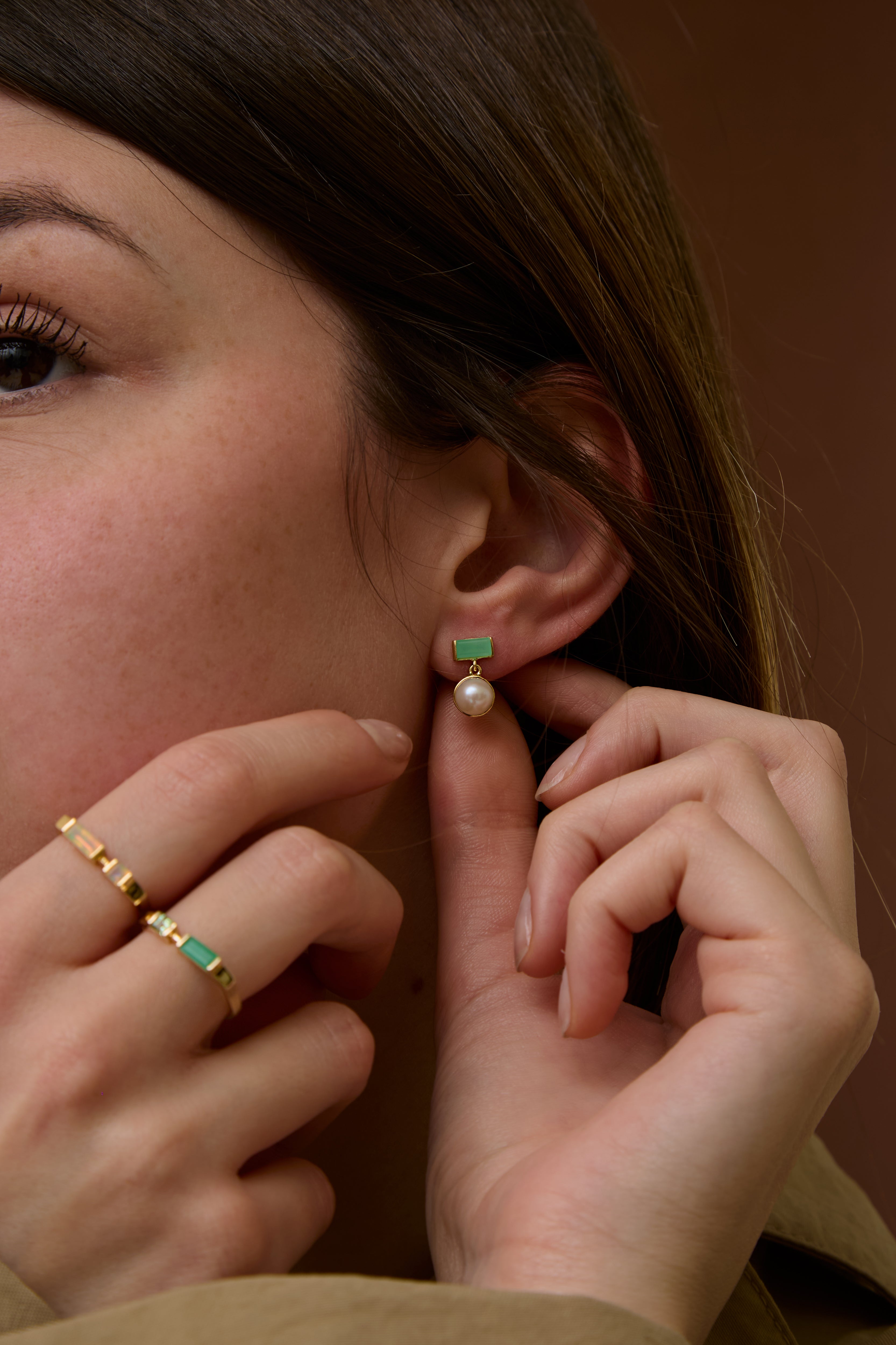 Orecchini Perla Baguette dal design senza tempo, con un tocco di modernità! Infatti, la disposizione asimmetrica delle pietre aggiunge personalità a questi orecchini, rendendoli davvero unici.