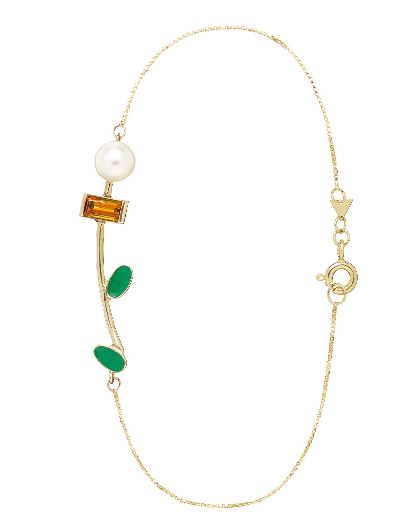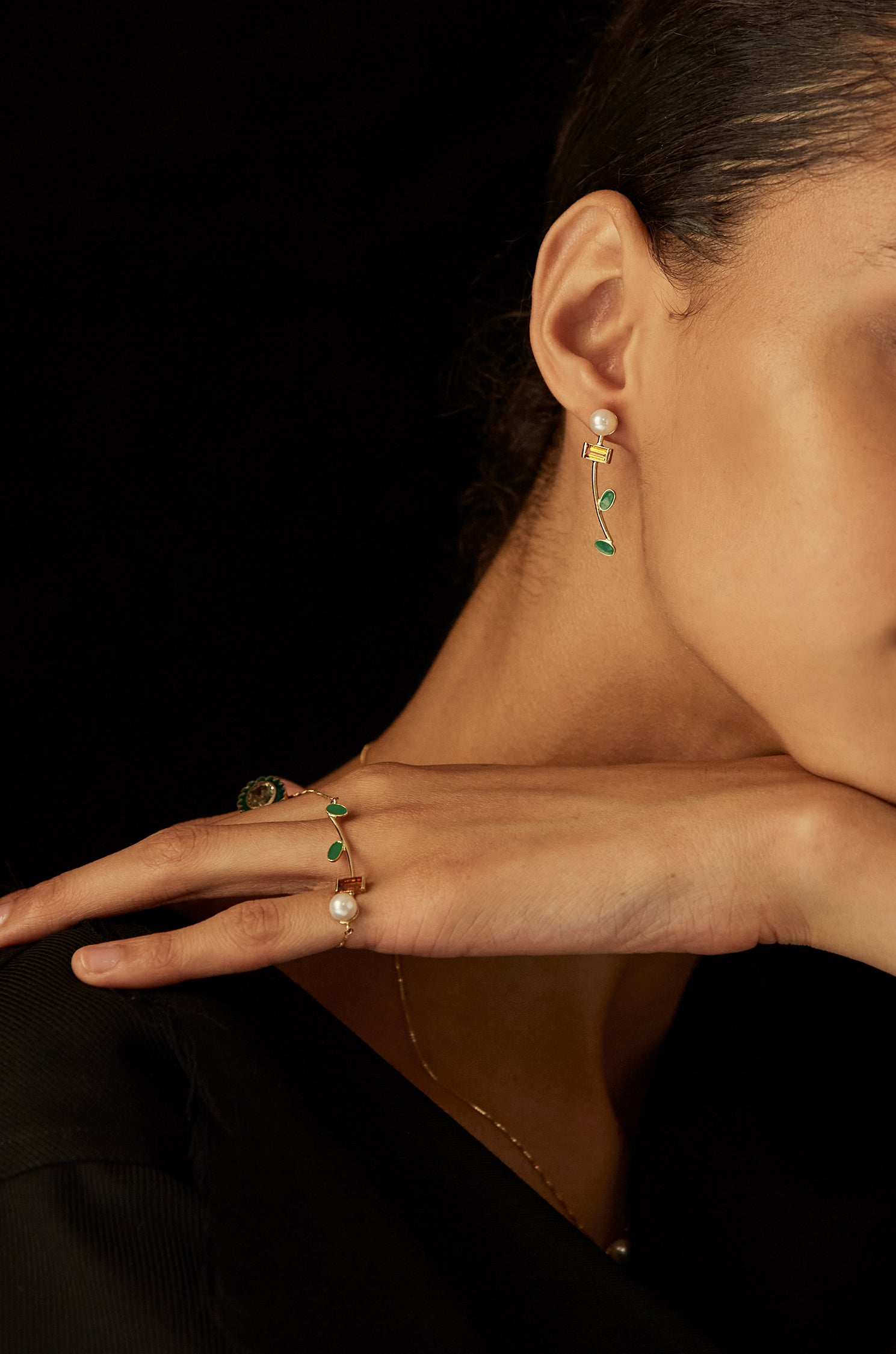 L'interpretazione astratta di un fiore dal lungo stelo, con perla bianca e pietra citrino - si chiama Petalos Flor.