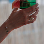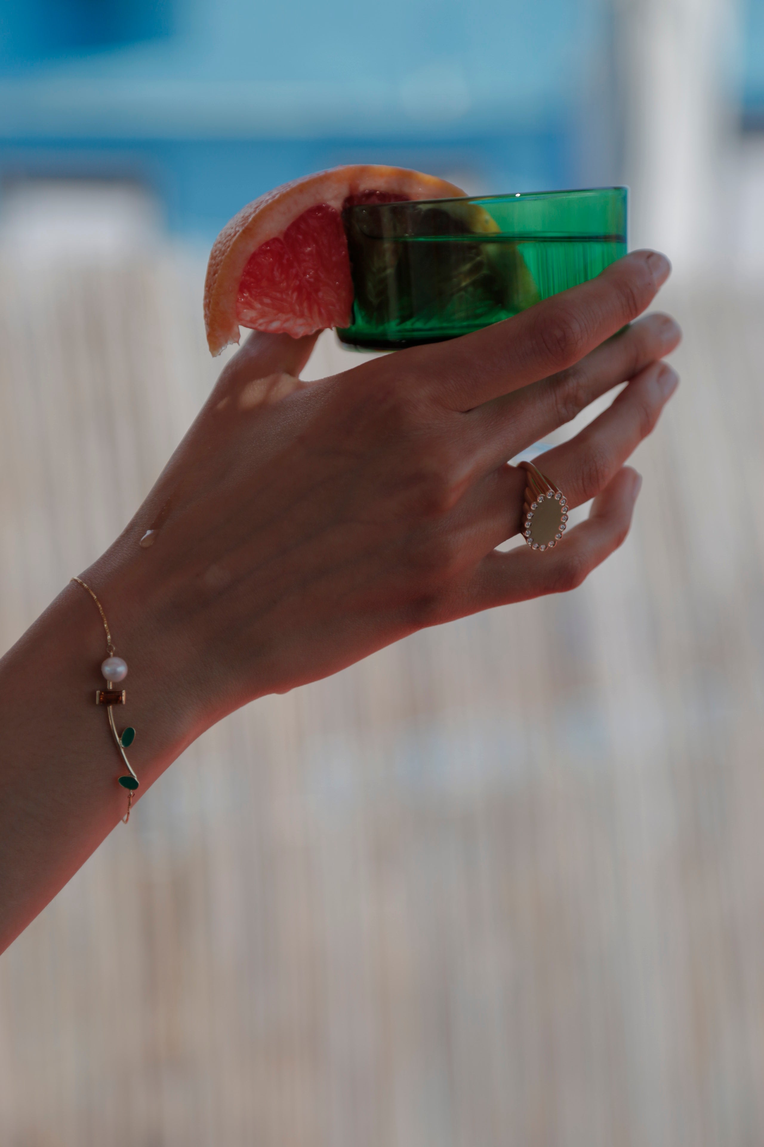 Materiale: Oro giallo 18ct, Perla d'acqua dolce, Citrino in taglio baguette, Smaltato a mano in verde pistacchio