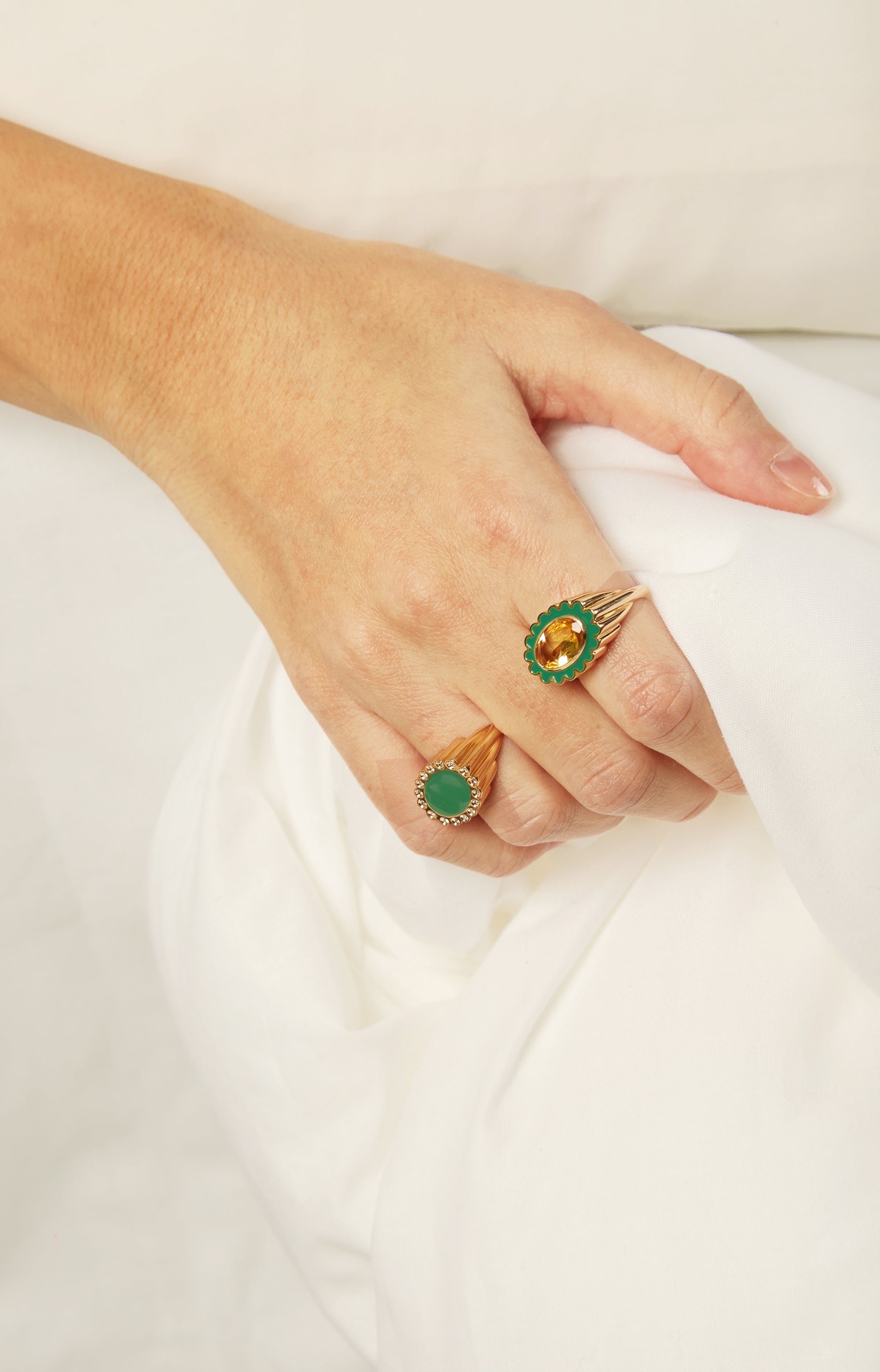 Materiale: Oro giallo 18ct, Smaltato a mano in verde pistacchio, Citrino in taglio ovale / peso totale 3,34ct