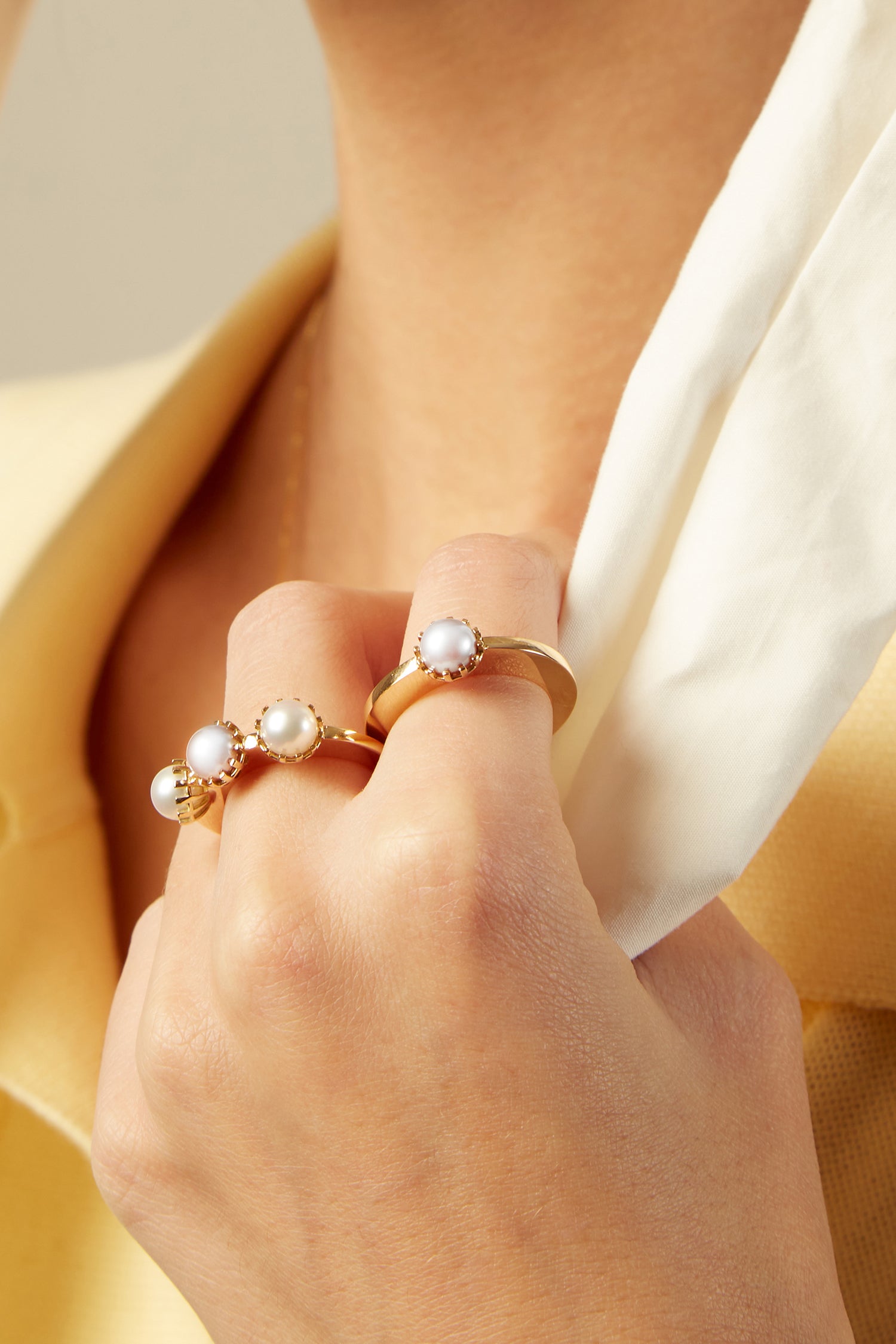 Trio Flor Perla, dalla collezione Flor d'alta gioielleria, è un anello con forma a mezzaluna e tre perle bianche. Un gioiello elegante e speciale, un omaggio alla femminilità.
