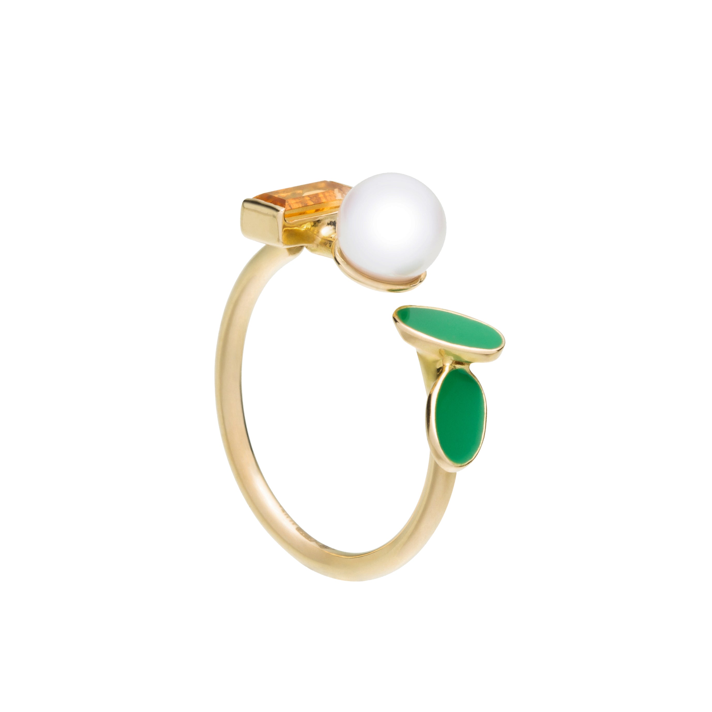 Materiale: Oro giallo 18ct, Perla d'acqua dolce, Citrino in taglio baguette, Smaltato a mano in verde pistacchio
