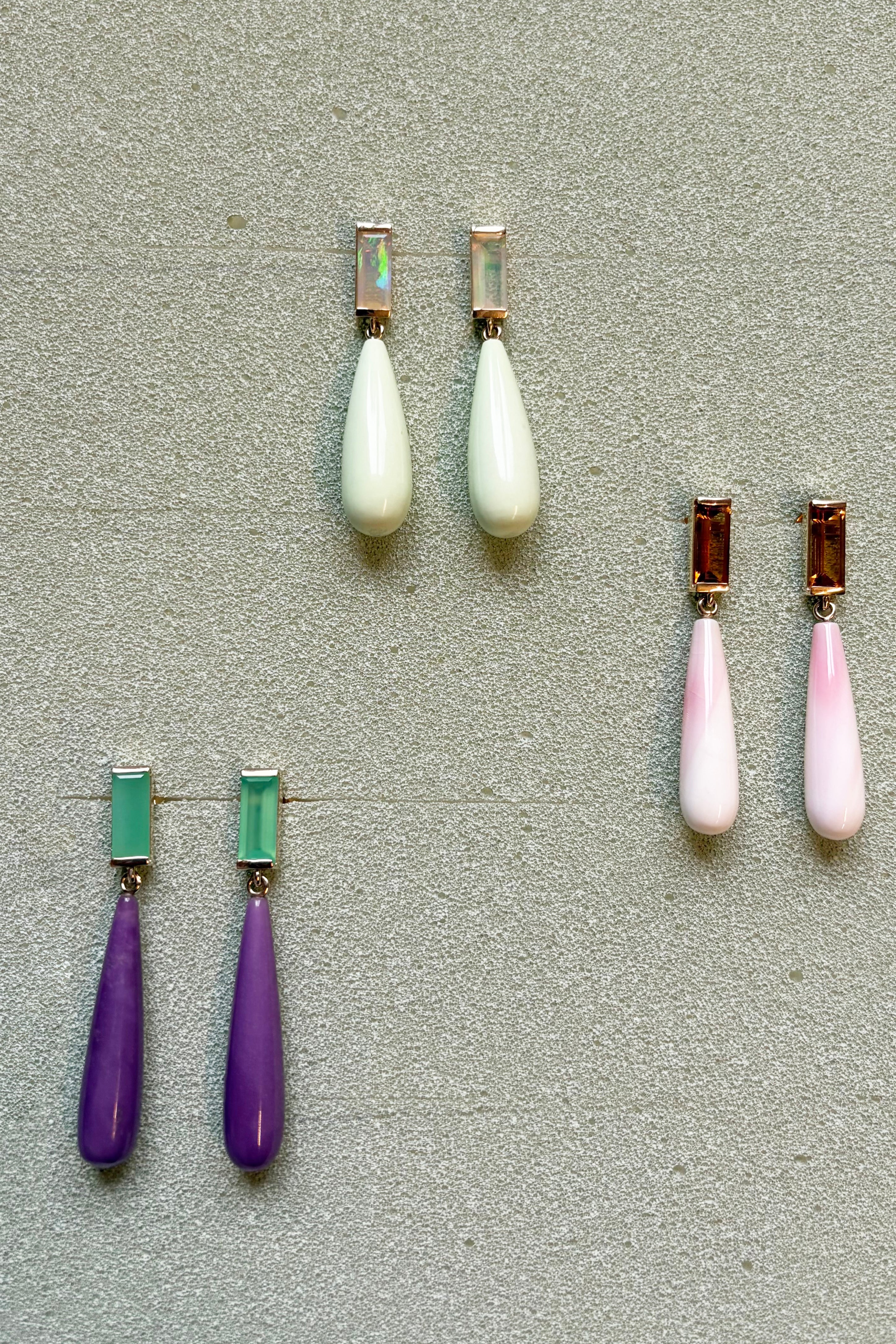 Gli orecchini Deco Maxi Drop brillano di una luce fresca e sofisticata. In oro 14ct, accostano il verde delle pietre crisoprasio alla nuance viola della fosfosiderite, creando un equilibrio elegante e inaspettato. Raffinati ma disinvolti, questi orecchini regalano un tocco di colore ricercato capace di valorizzare ogni outfit.