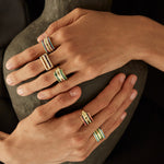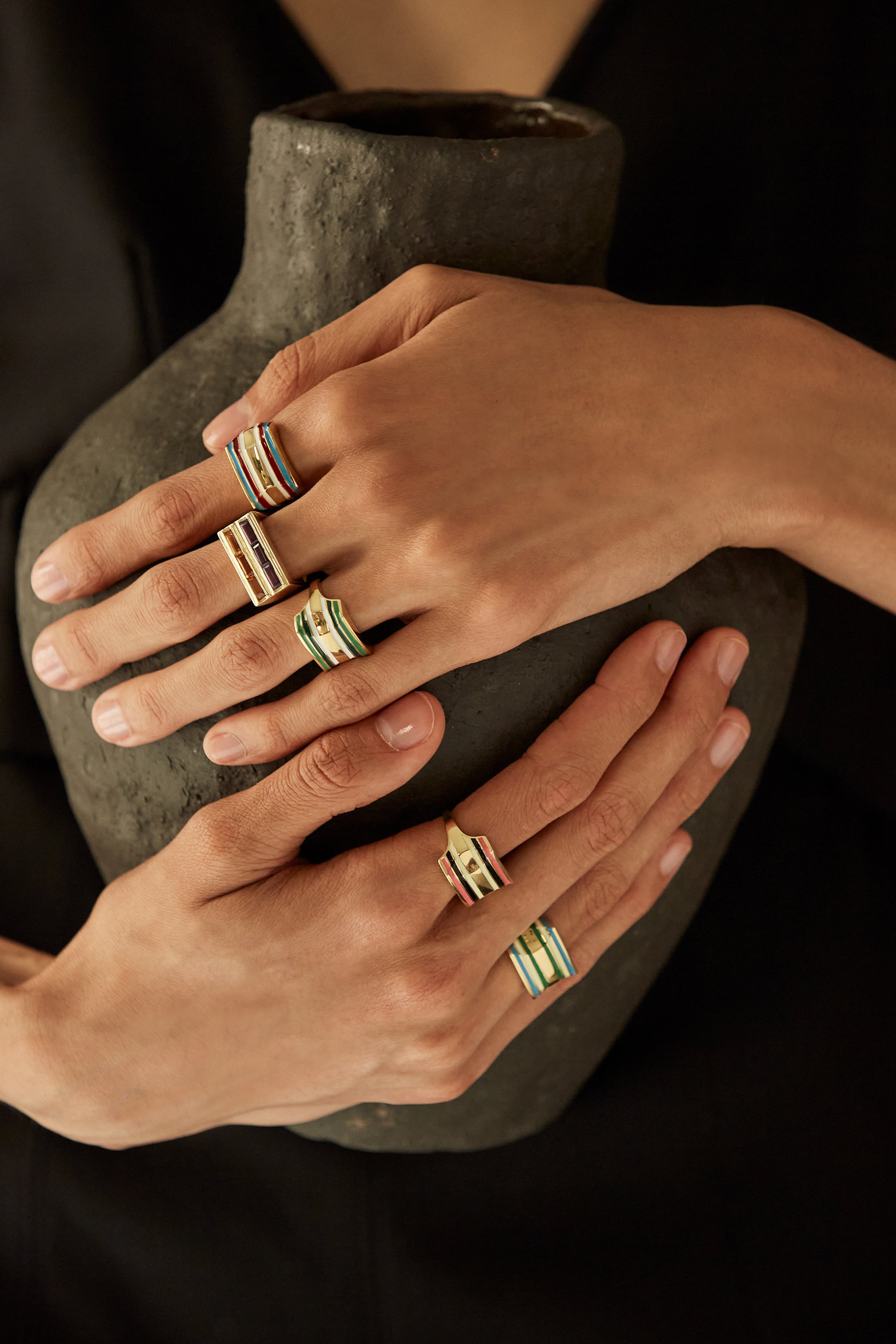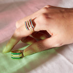 Un anello che ricorda l'estate e i suoi colori vivaci! Ispirato alle strisce tipiche degli ombrelloni da spiaggia, Colores è un gioiello unico nel suo genere.