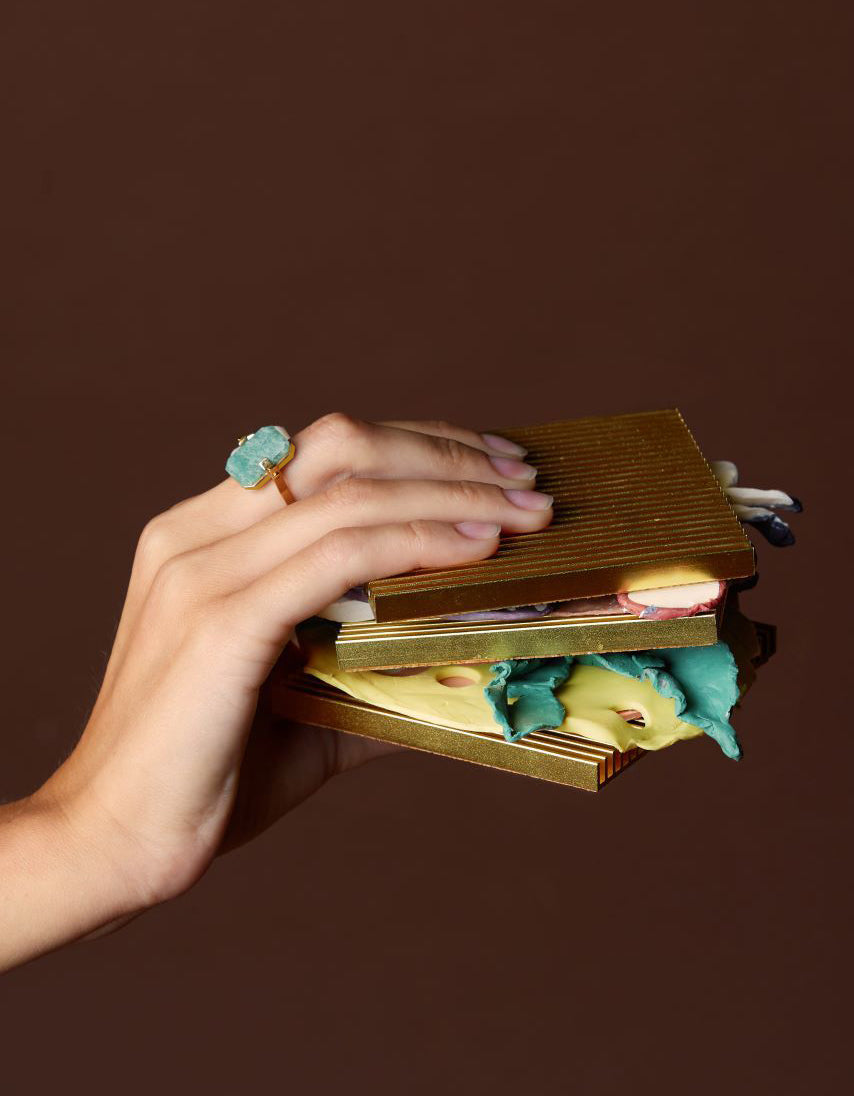Deco Sandwich è il nostro anello iconico, combina l’eleganza art deco degli anni 30 con un tocco contemporaneo dato dal movimento girevole. L'amazzonite ti aiuterà ad esplorare la tua interiorità, mentre la giada gialla ha il potere di trasmettere allegria e positività. Abbinalo ai nostri anelli Diaspro per sentire al massimo i benefici delle pietre!