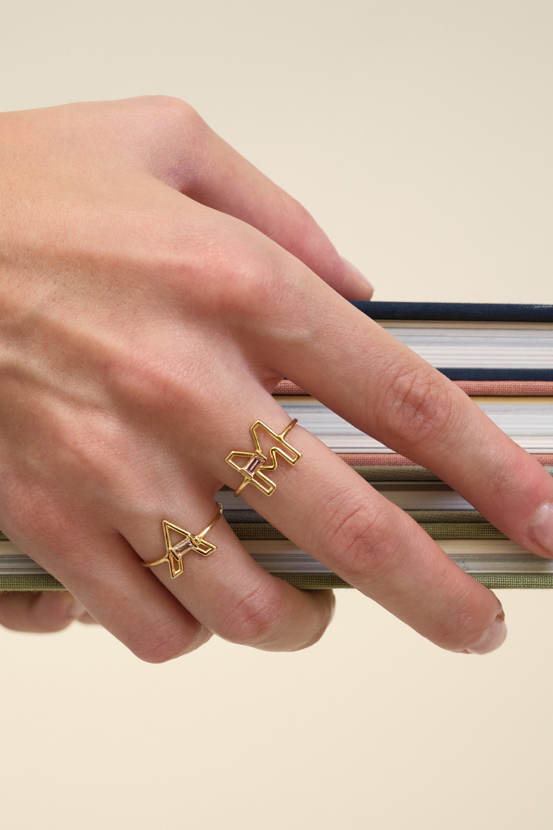 Raffinato e ricco di significato, l’anello con la lettera “M” unisce una fascia in oro lucido a una delicata tormalina rosa. Pezzo distintivo della nostra collezione di anelli con lettere, rende omaggio alla passione per lo studio, la cultura e l’espressione personale. Perfetto per sognatori, studiosi o per chi porta la “M” nel nome, questo anello rappresenta l’incontro tra eleganza e immaginazione. Indossalo da solo per un tocco sofisticato oppure abbinalo ad altre lettere per comporre parole che raccontano chi sei. Un tributo alla tua unicità e alla tua mente brillante.