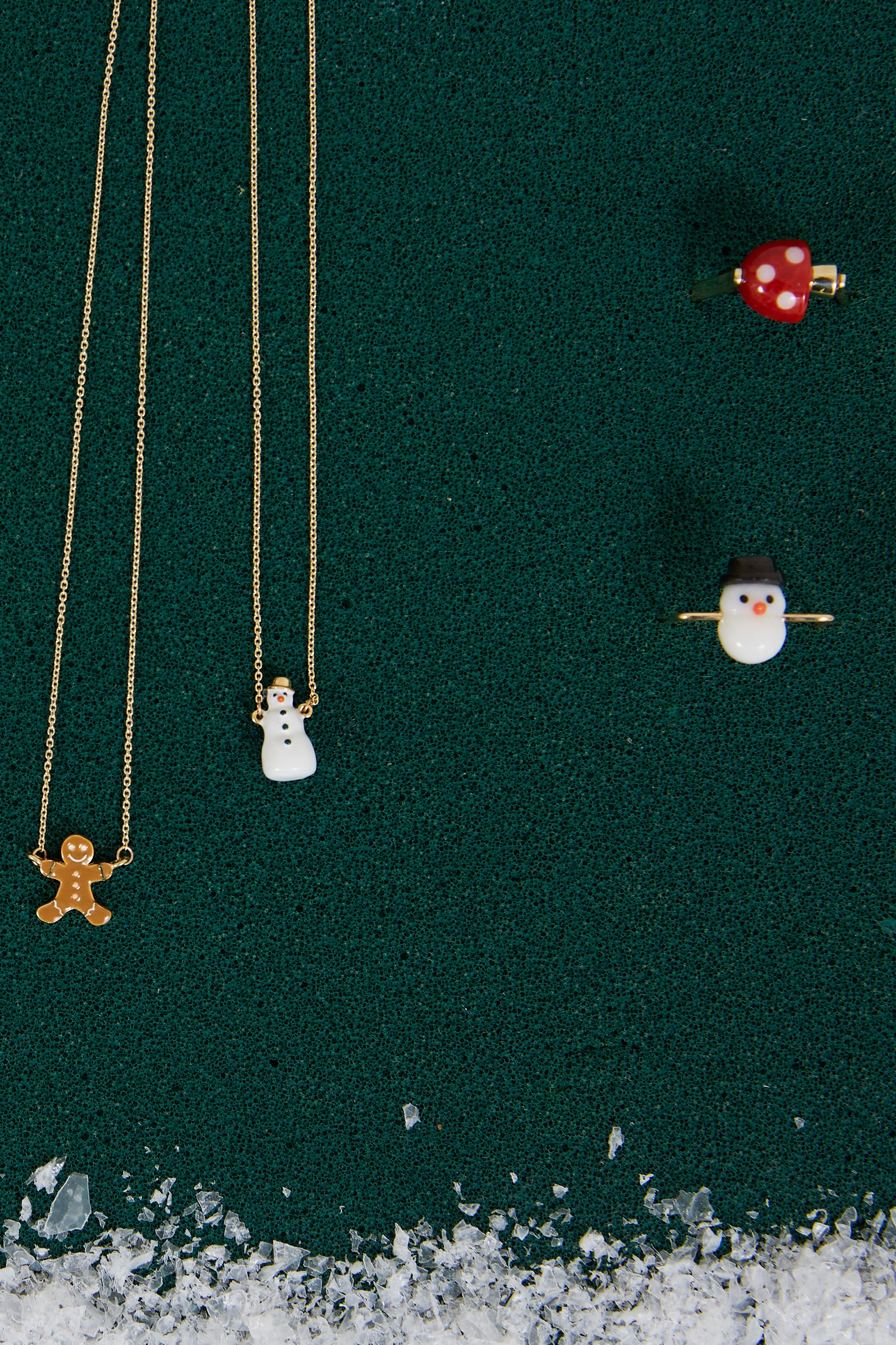 Un anello in oro dall'elegante design minimalista con un pupazzo di neve realizzato a mano in corallo. Con i suoi dettagli delicati e la sua forma giocosa, evoca l'atmosfera incantata dell'inverno e la magia del Natale.