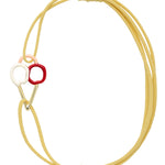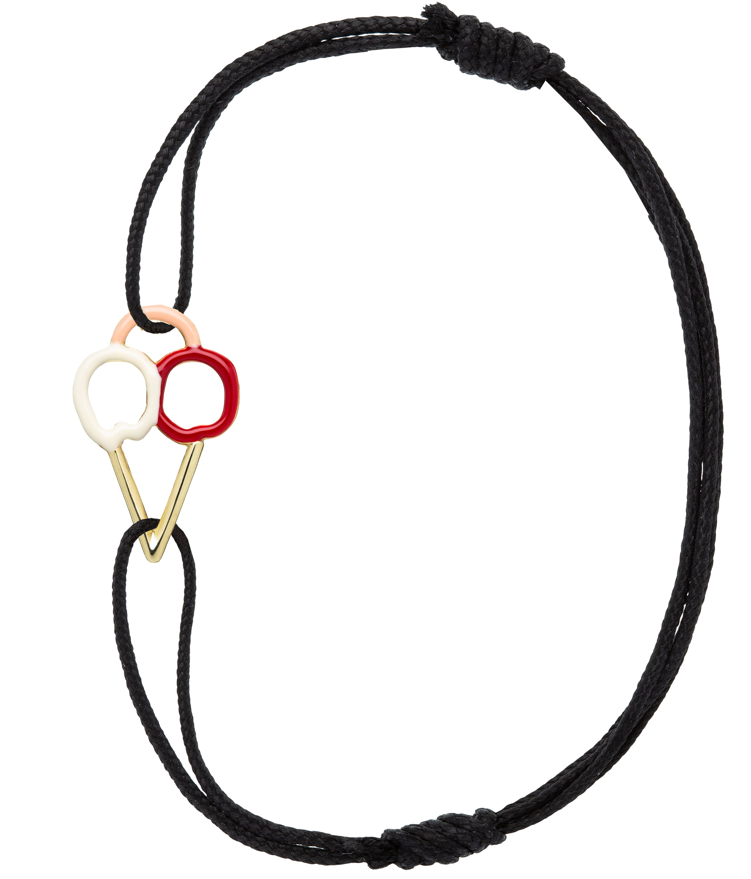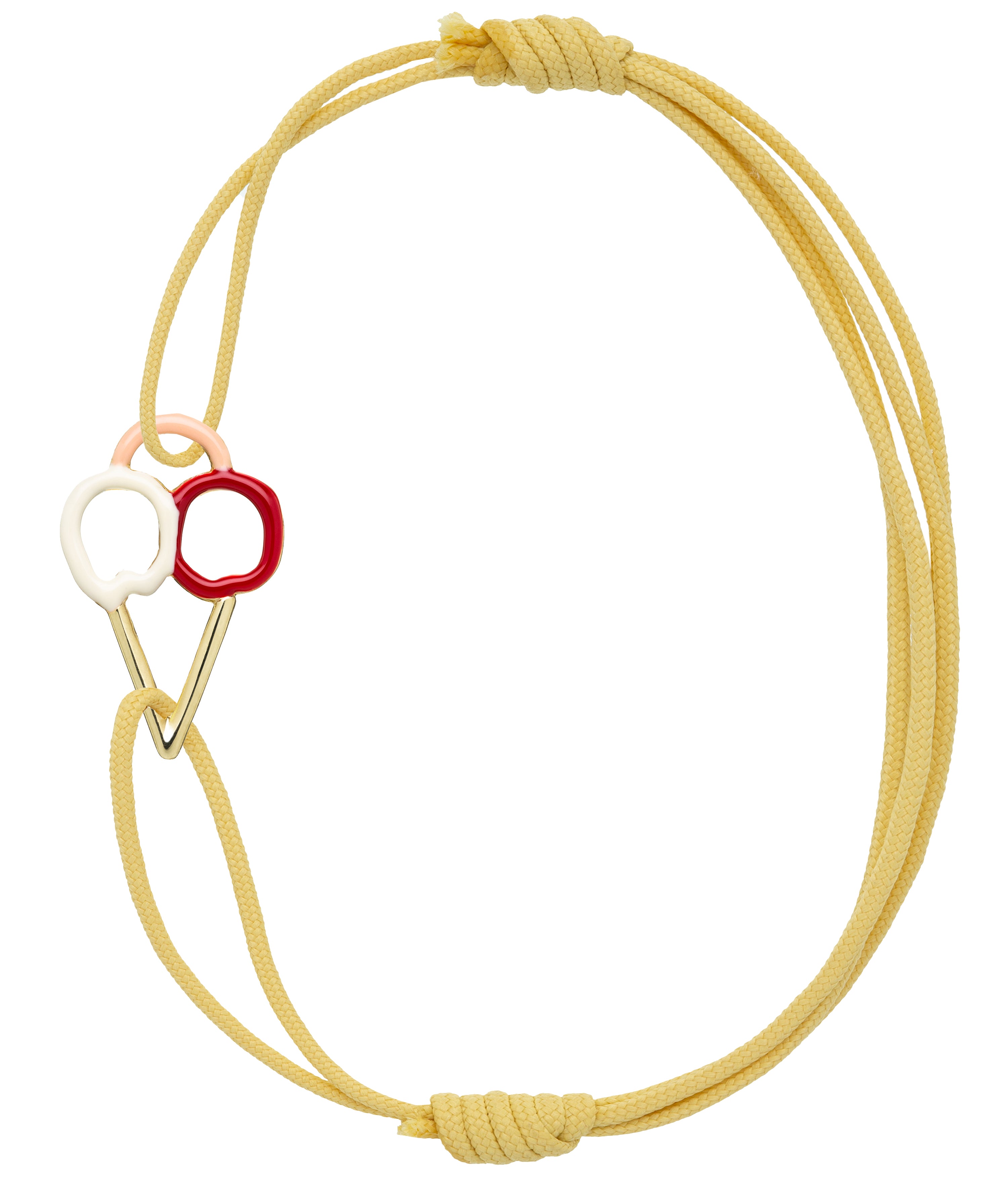 Materiale: Oro giallo 9ct,Smaltato a mano in rosa fragola, bianco cocco e rosso lampone, Corda in 100% cotone / Eco in 100% poliestere riciclato