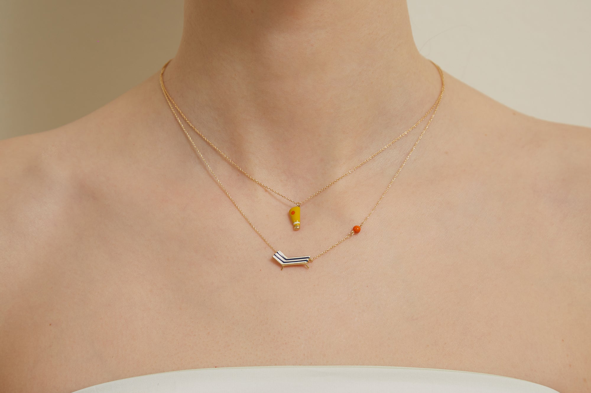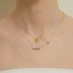 La collana Crema Solar è l'accessorio perfetto per chi ama stare al sole! Realizzato in oro con smalti giallo e arancione, questo piccolo ciondolo è un modo divertente e stiloso per sfoggiare il tuo amore per l'estate.